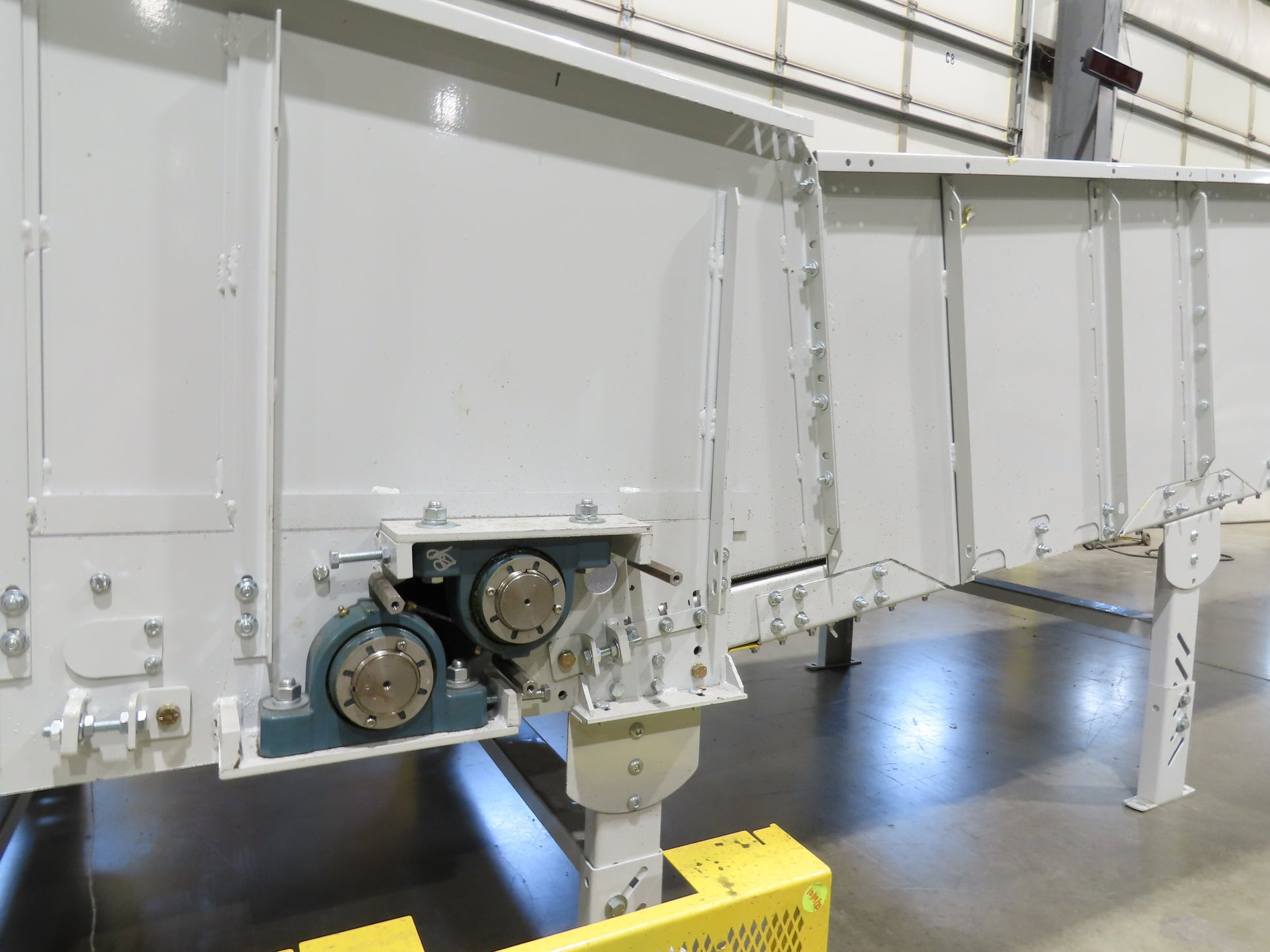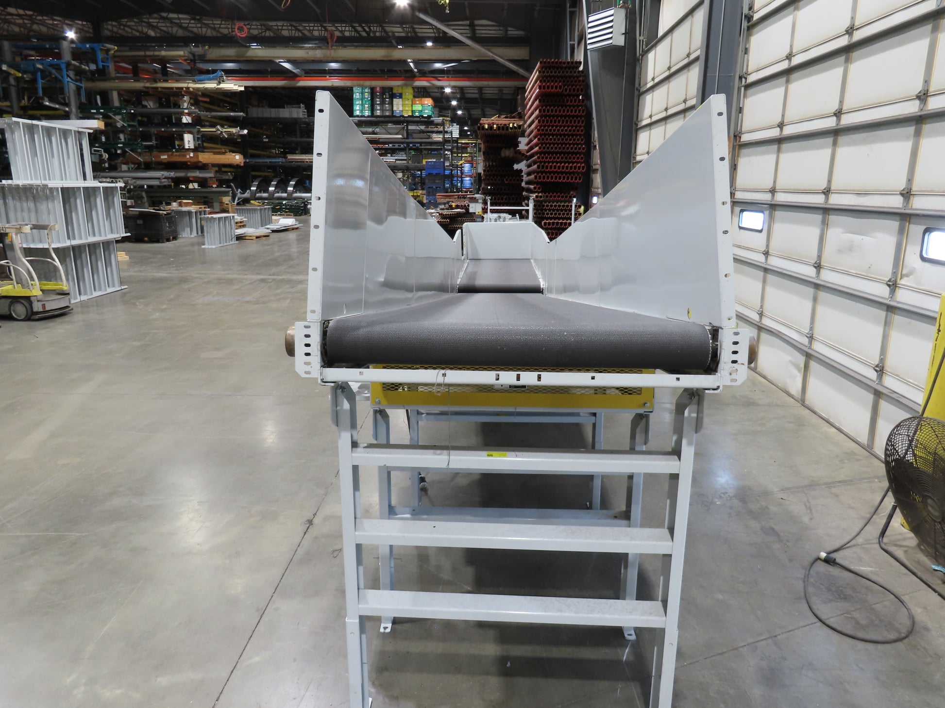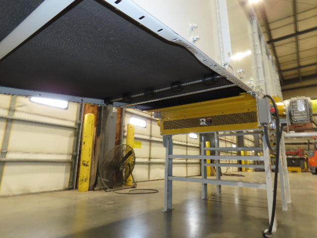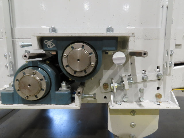 - Bed Height (From Floor): Current set up: 26" Infeed. 59" Discharge top of incline bed. This height can be adjusted via leg heights. Pivot point has angle adjustment. Infeed adjustment 26"-29" Discharge 57"-60" Max