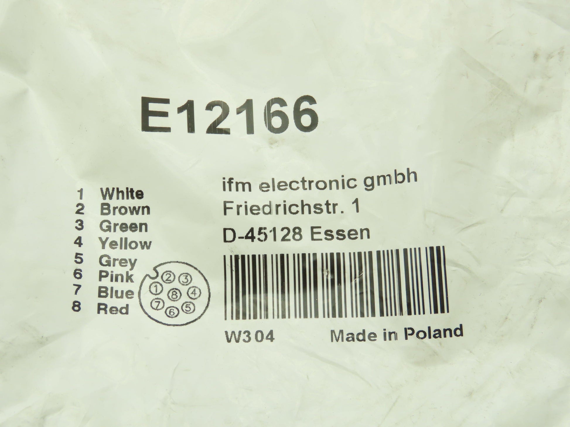 IFM E12166 Cordset Female 8 End 1 Pins Cable 5M 2A Max IP 67