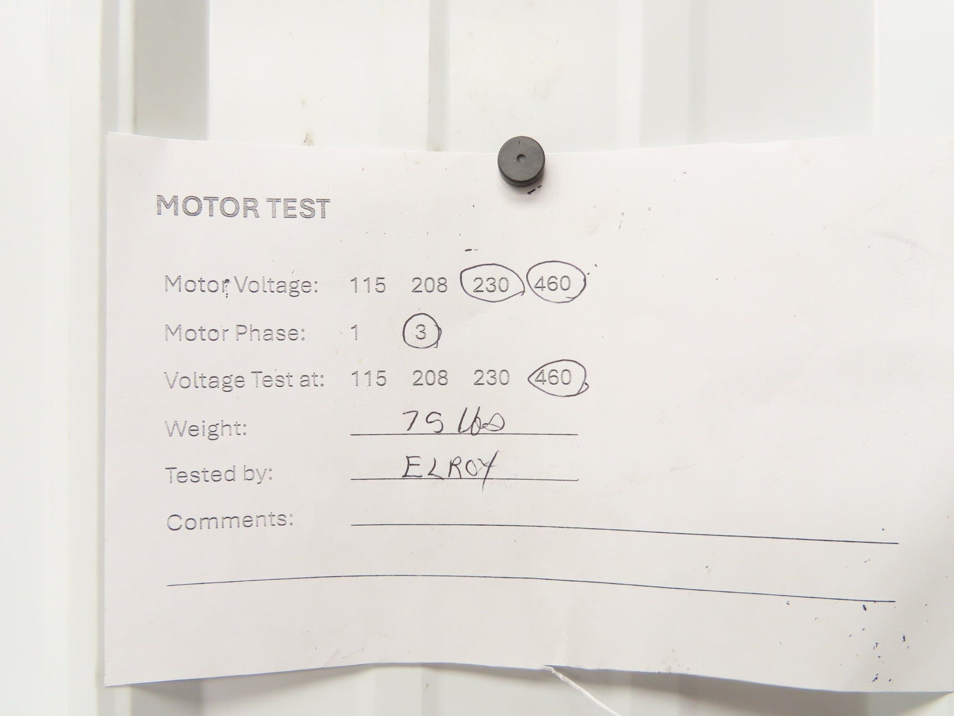 - Voltage Tested @: 460v