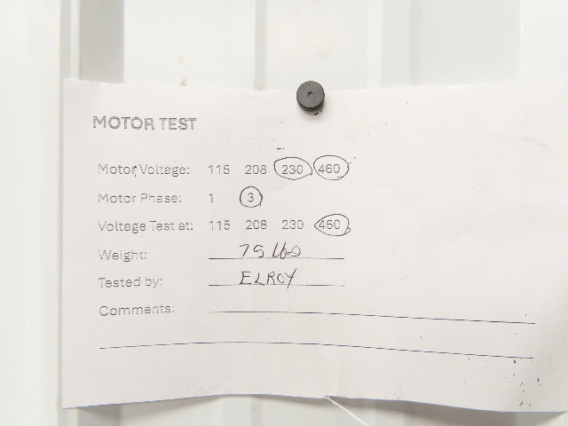 - Motor Specs: 1hp 1760rpm 230/460v 143TC