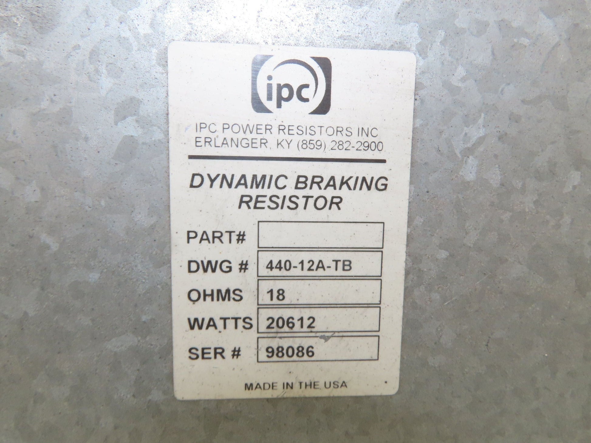 IPC 440-12A-TB Power Brake Resistor Covered 21.6kW 18 Ohms