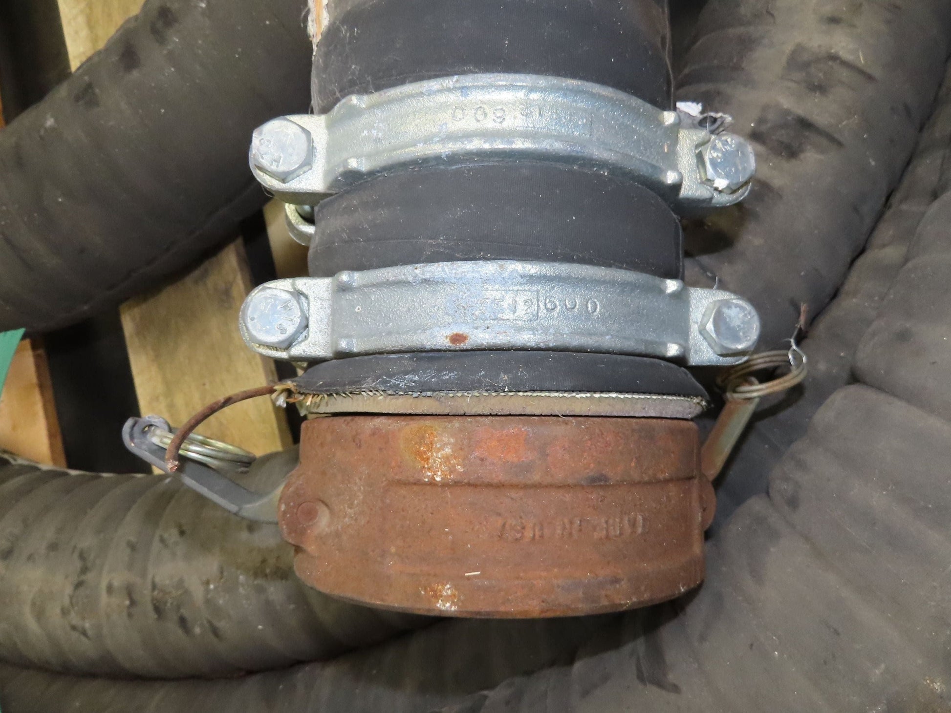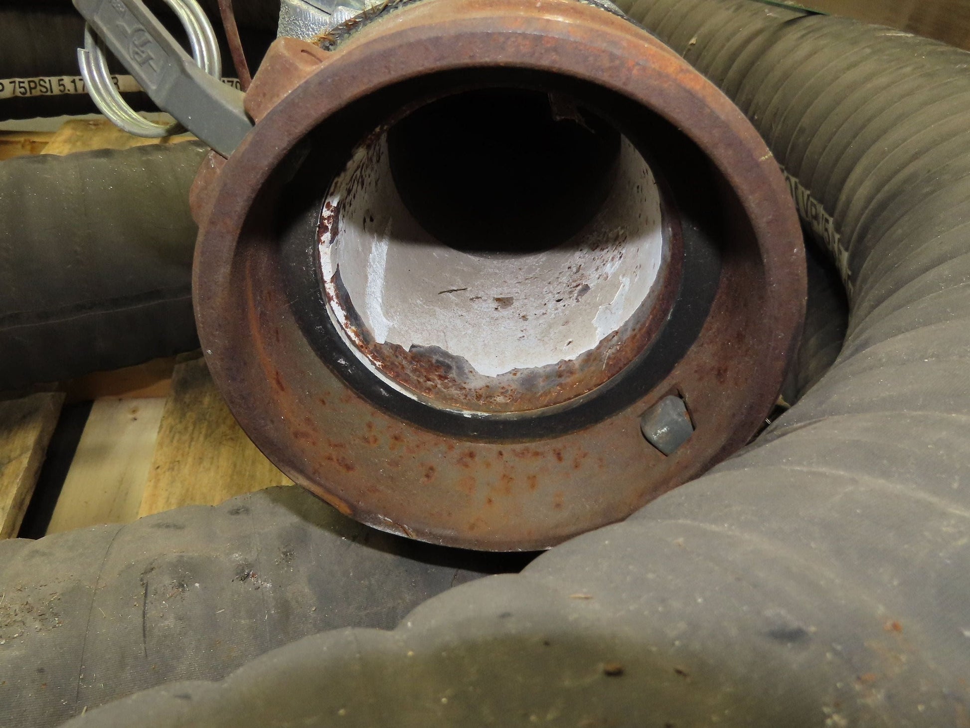 - Used condition. Hose was stored outside and has some rust on fittings.