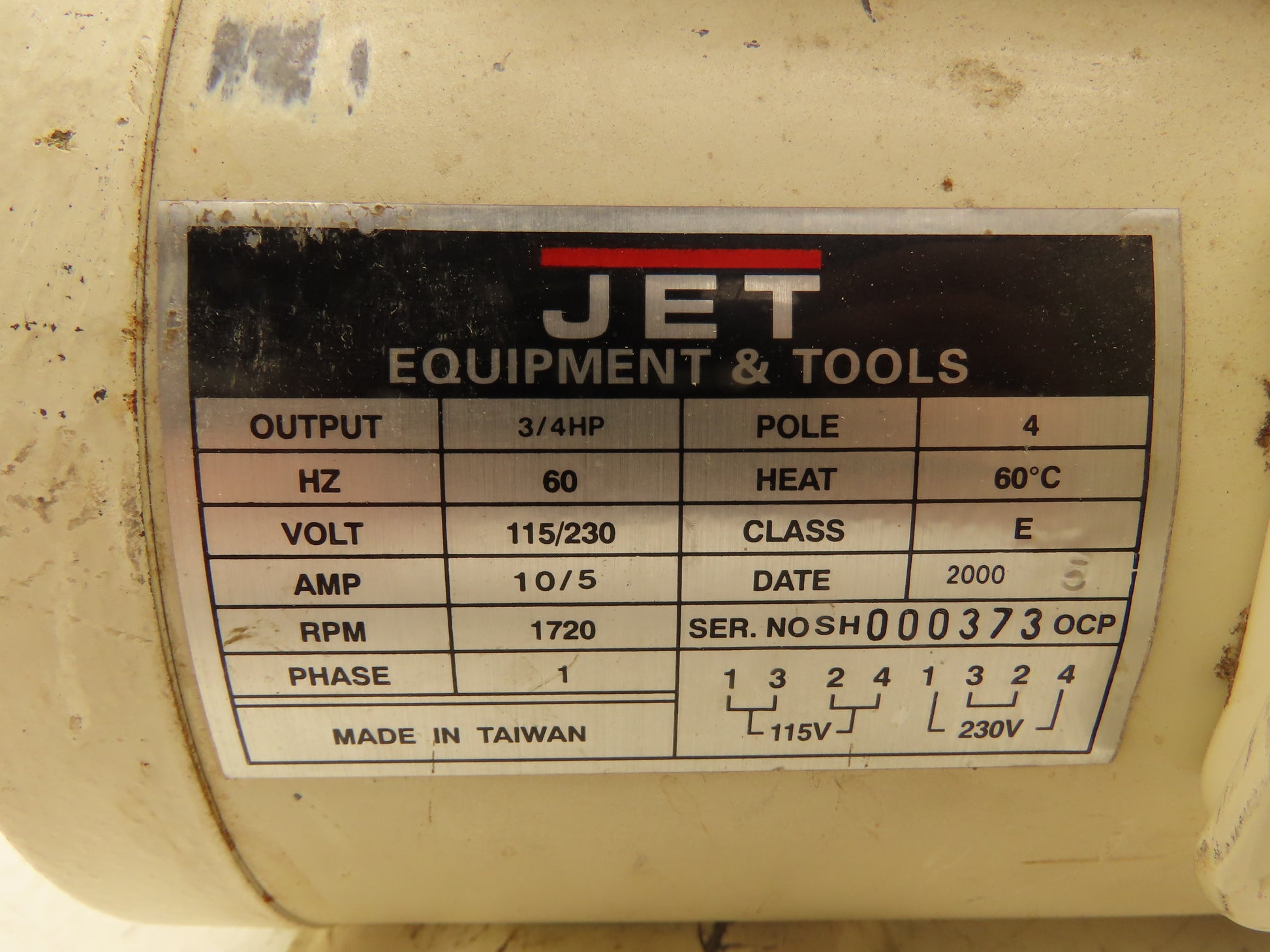 Jet Equipment & Tool Spindle Sander Motor 3/4Hp 1720 RPM 115/230V 1PH