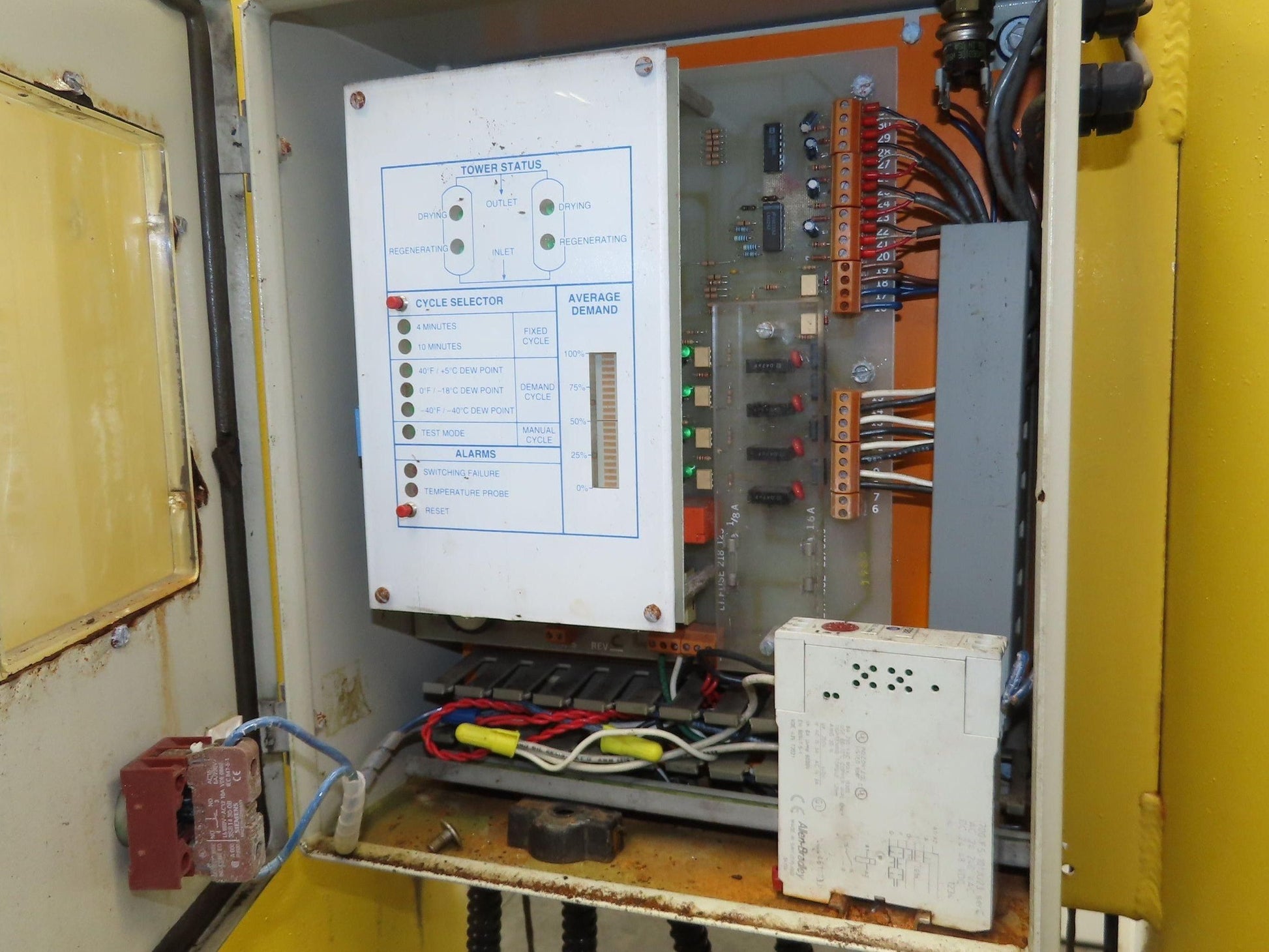 - 2" pipe inlet and out lets. Valves to select which tanks to use. Controls look dated.