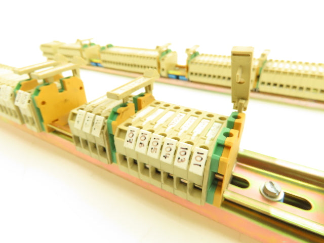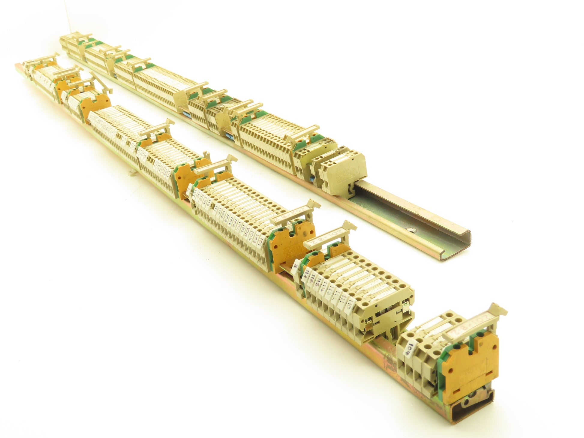 - Rail 2: 106x fuse holders, 11x Weidmuller yellow green 2.5mm² terminals