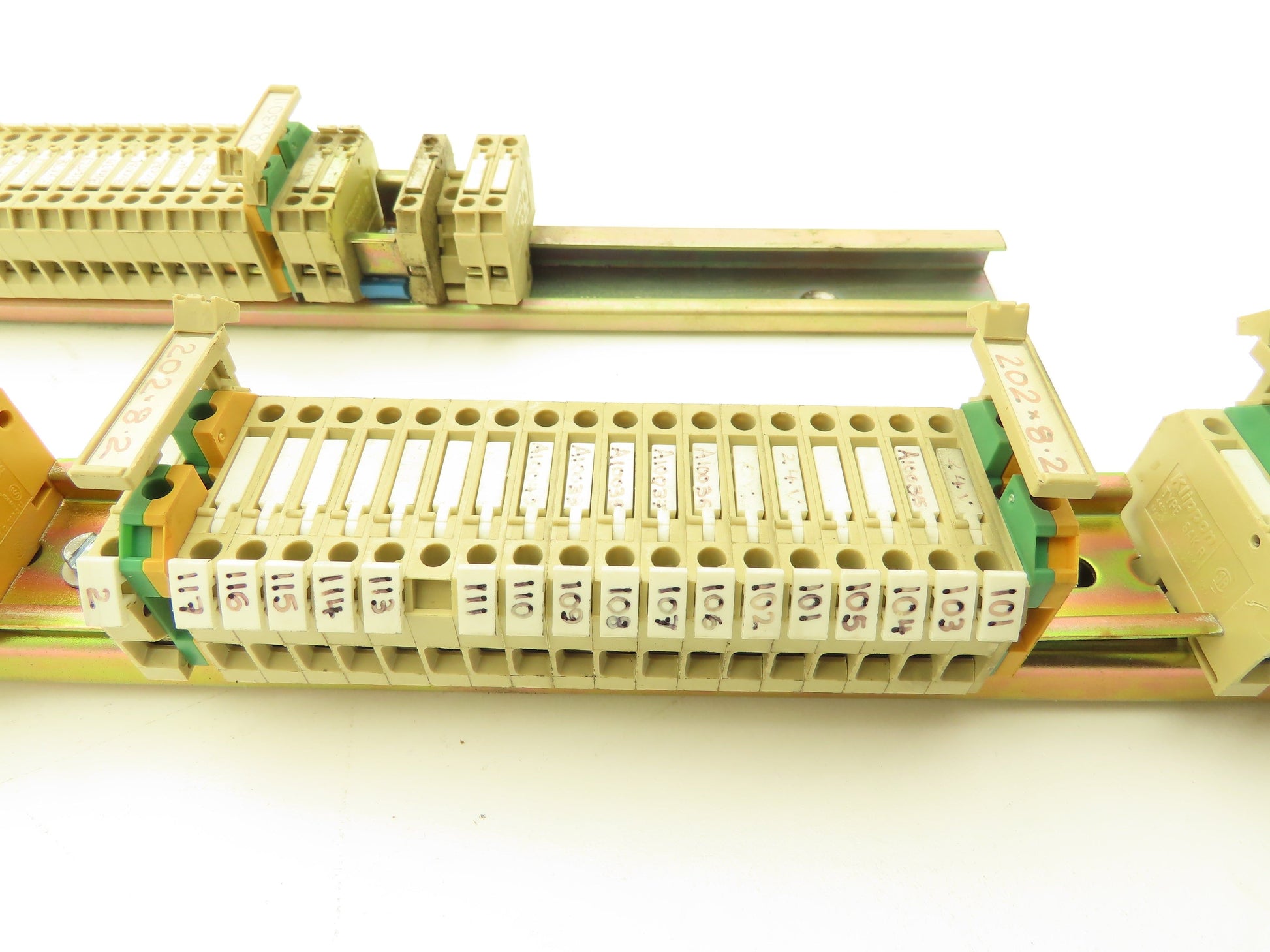 - Rail 1: 109x fuse holders, 10x Weidmuller yellow green 2.5mm² terminals