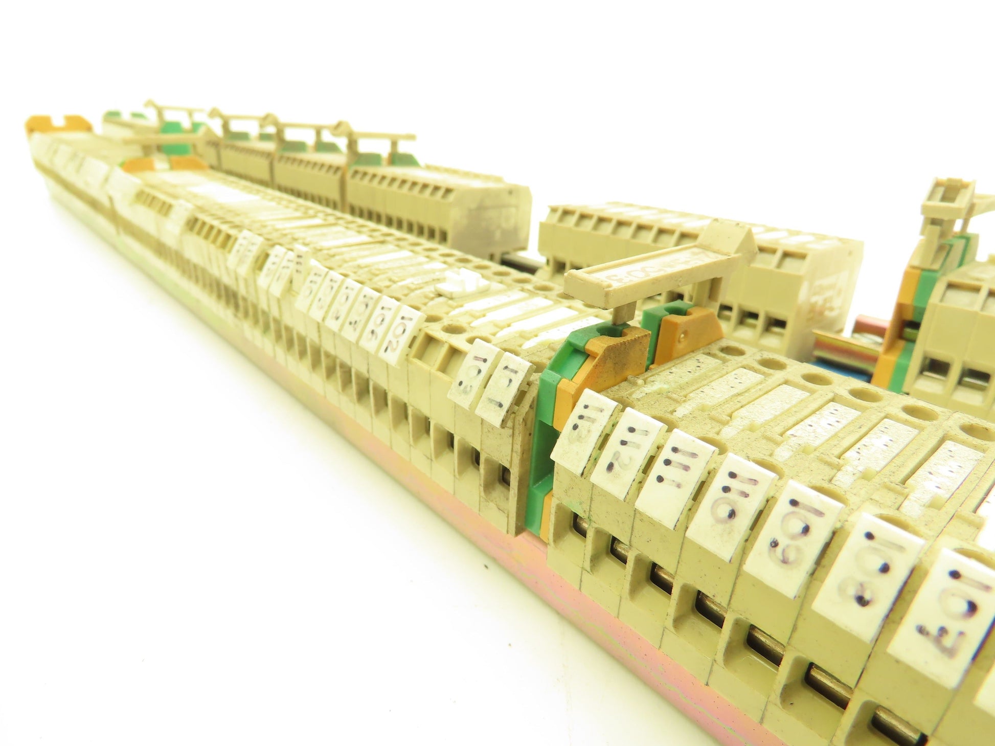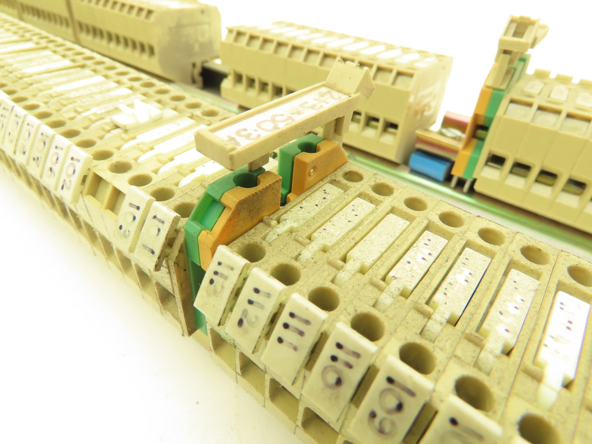 - Rail 1: 112x fuse holders, 6x Weidmuller yellow green 2.5mm² terminals