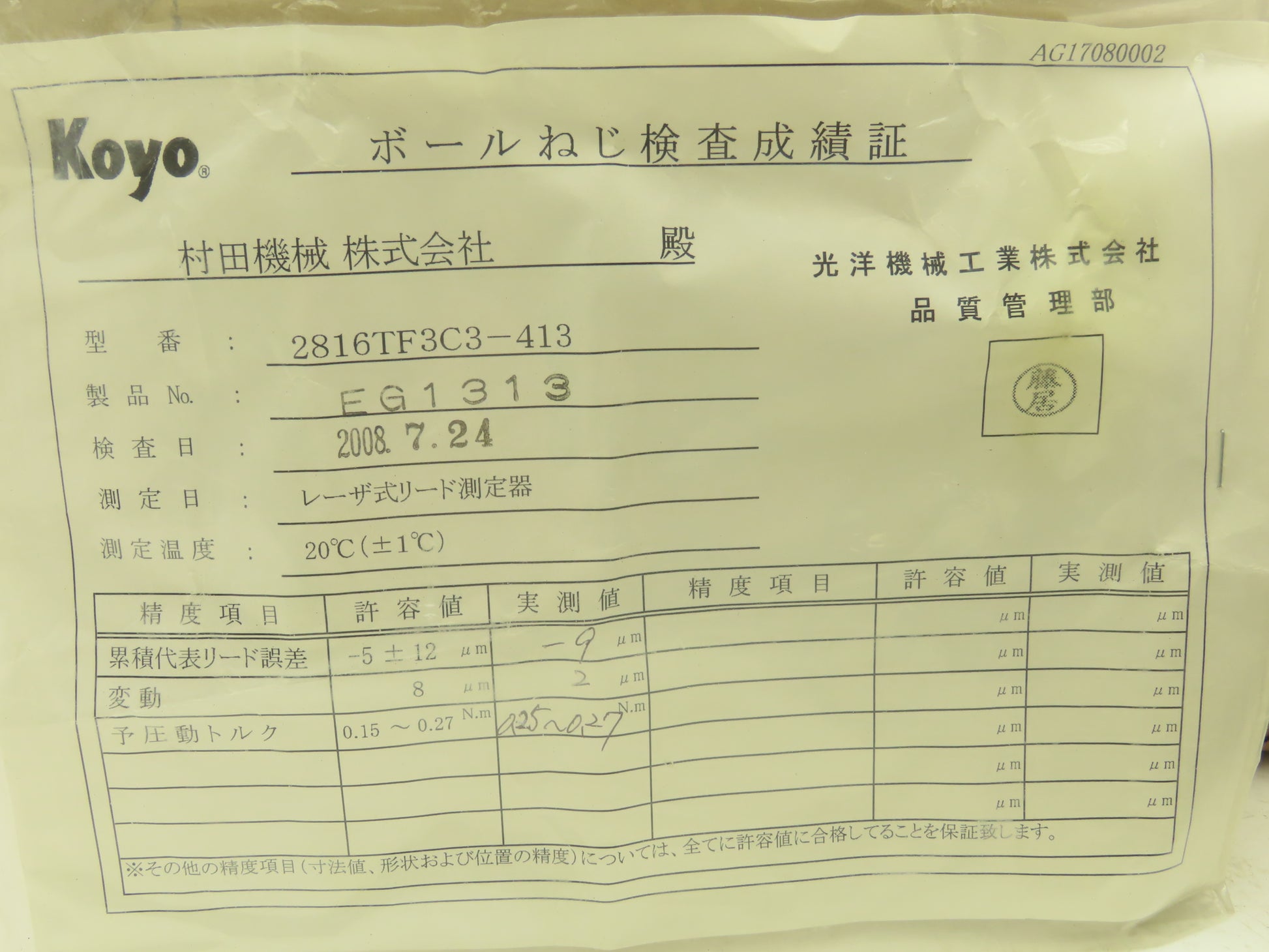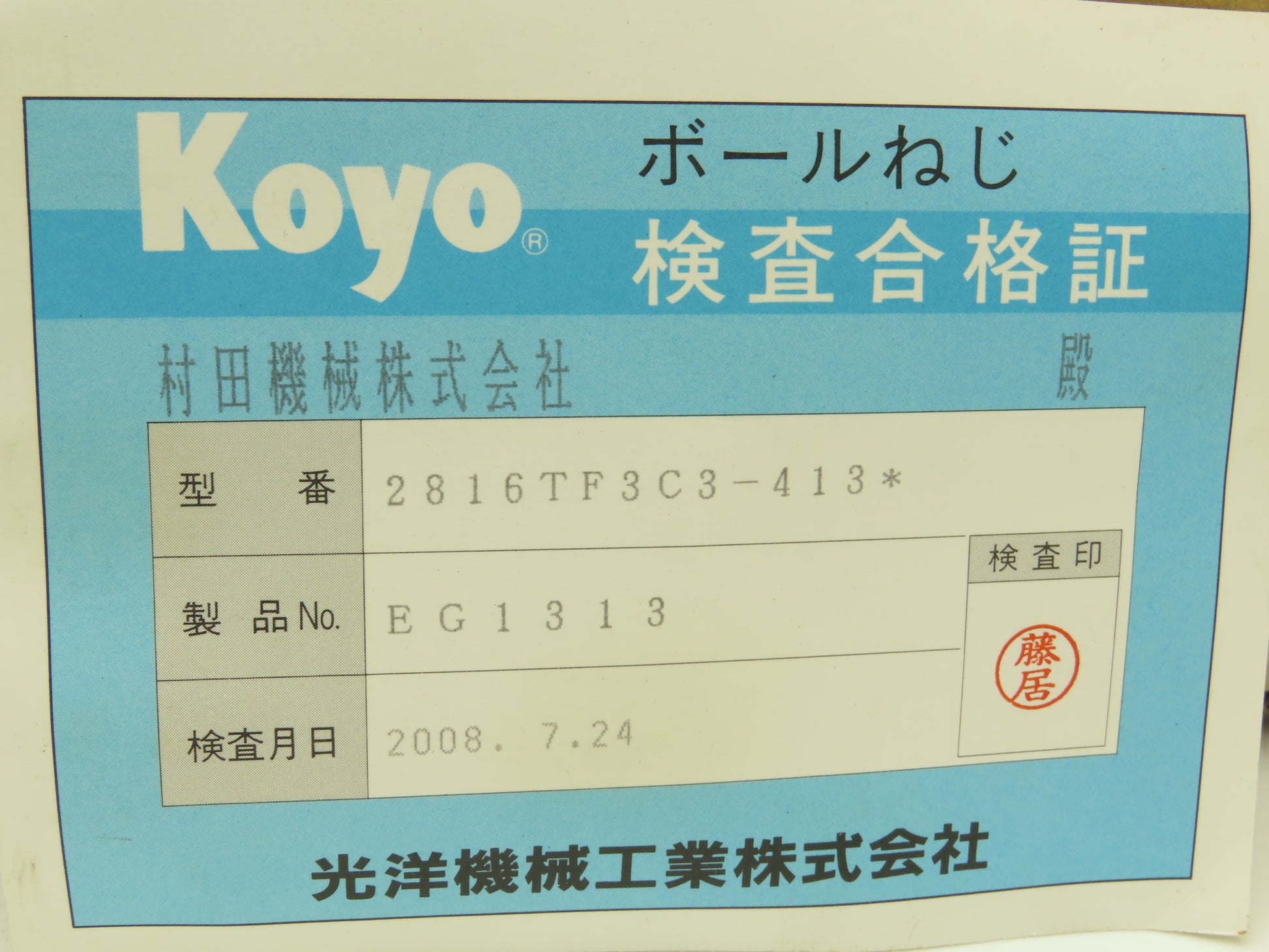 Koyo 2816TF3C3-413 Ball Screw & Nut Assy 28mm Dia 16mm Pitch 413mm OAL
