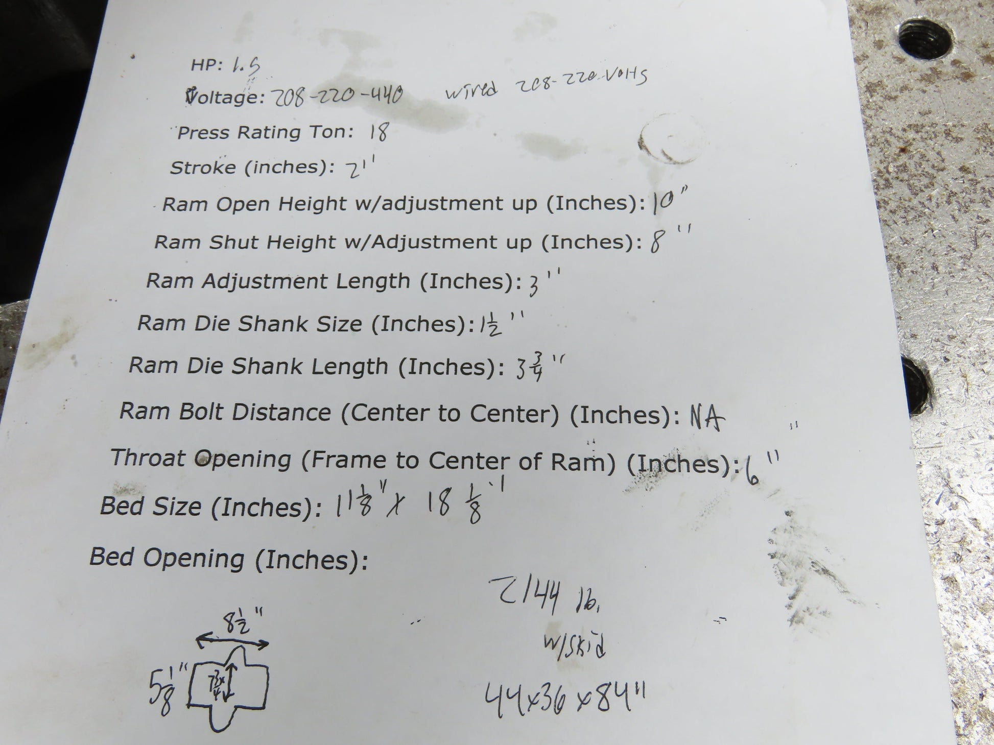 - Ram Die Shank Size (Inches): 1-1/2"