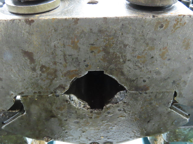 - Has aftermarket plate 1-5/8" thick with T slot. Center hole is 4-3/4"x4-1/2".