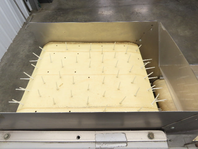 - Pin style Separator Conveyor set up on steel frame with locking caster wheels. Variable speed drive.