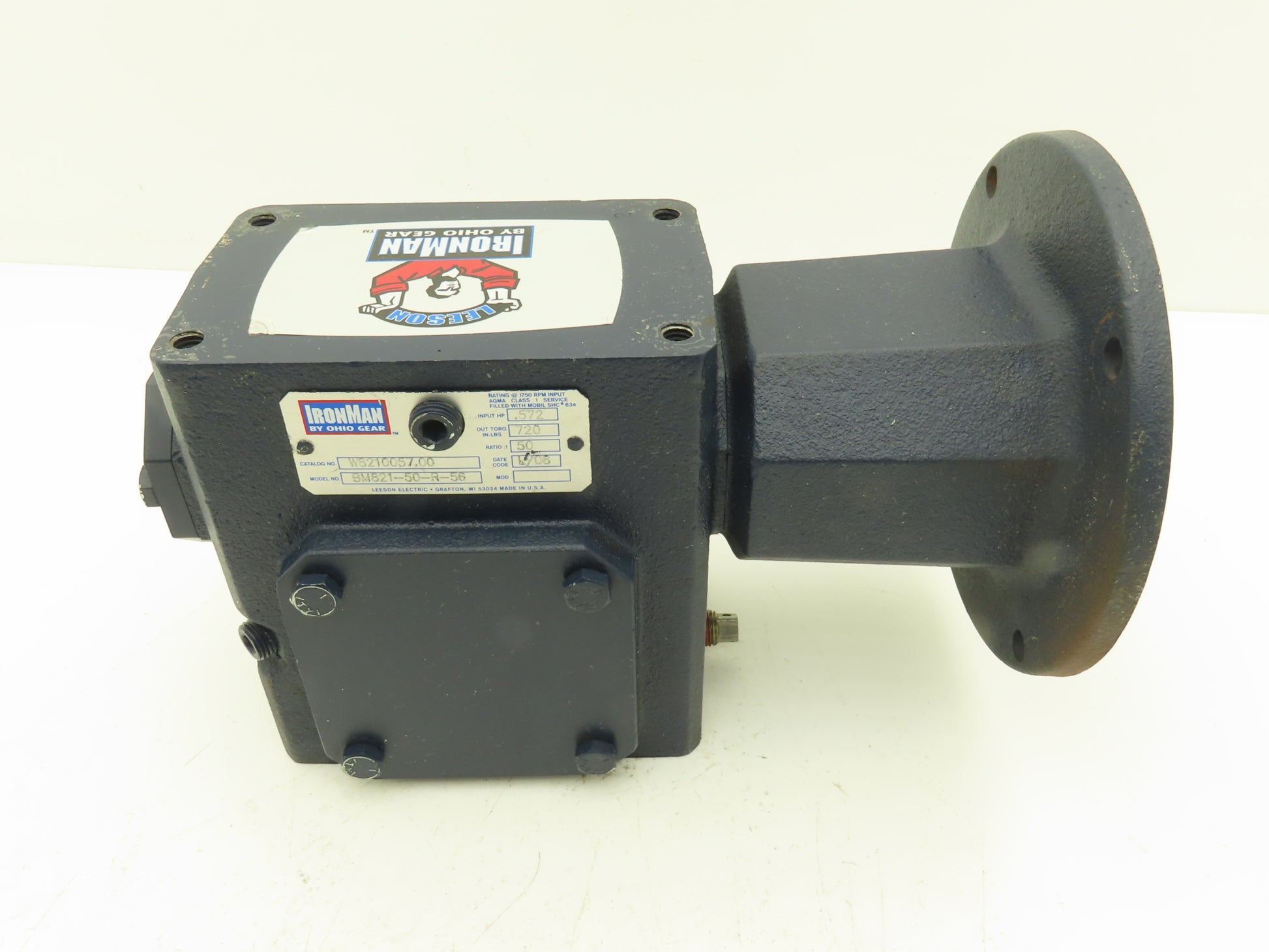 Leeson IronMan BM821-50-R-56 Worm Gearbox 50:1 Reducer 1/2Hp 35rpm 56C RH
