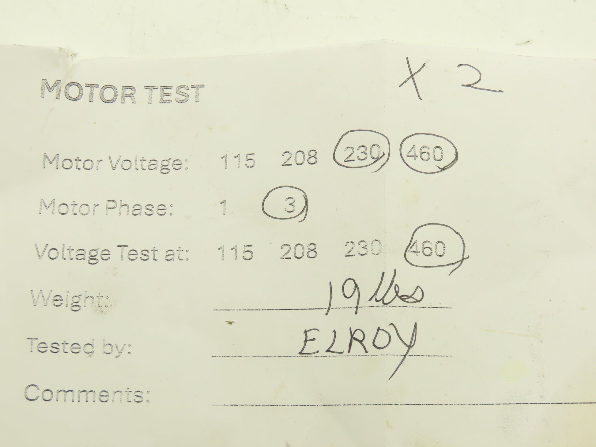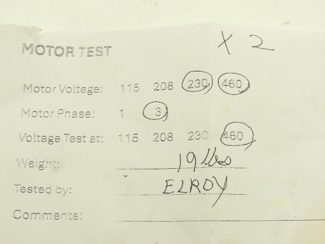 - Voltage tested at and wired for:: 460V 3PH