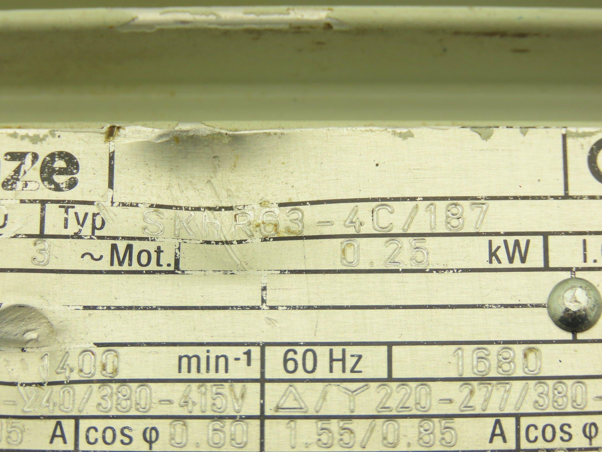 - Motor Brand and Model: Lenze SKHR63-4C/187