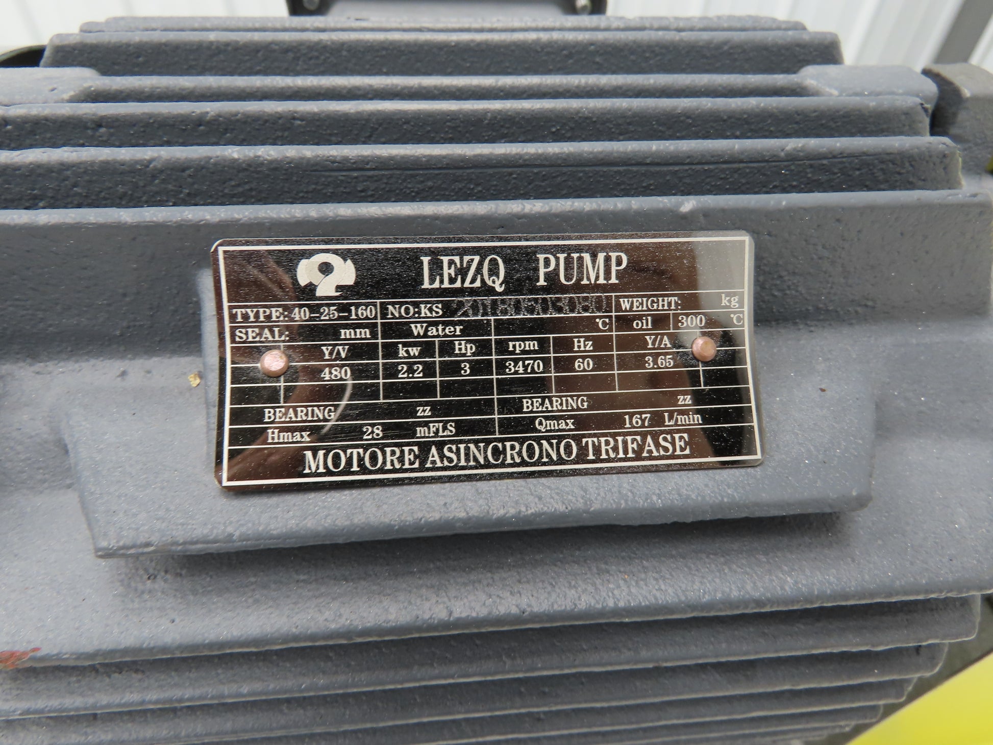 - Motor Specs: 2.2kw 3Hp 3470 RPM 480V 3PH