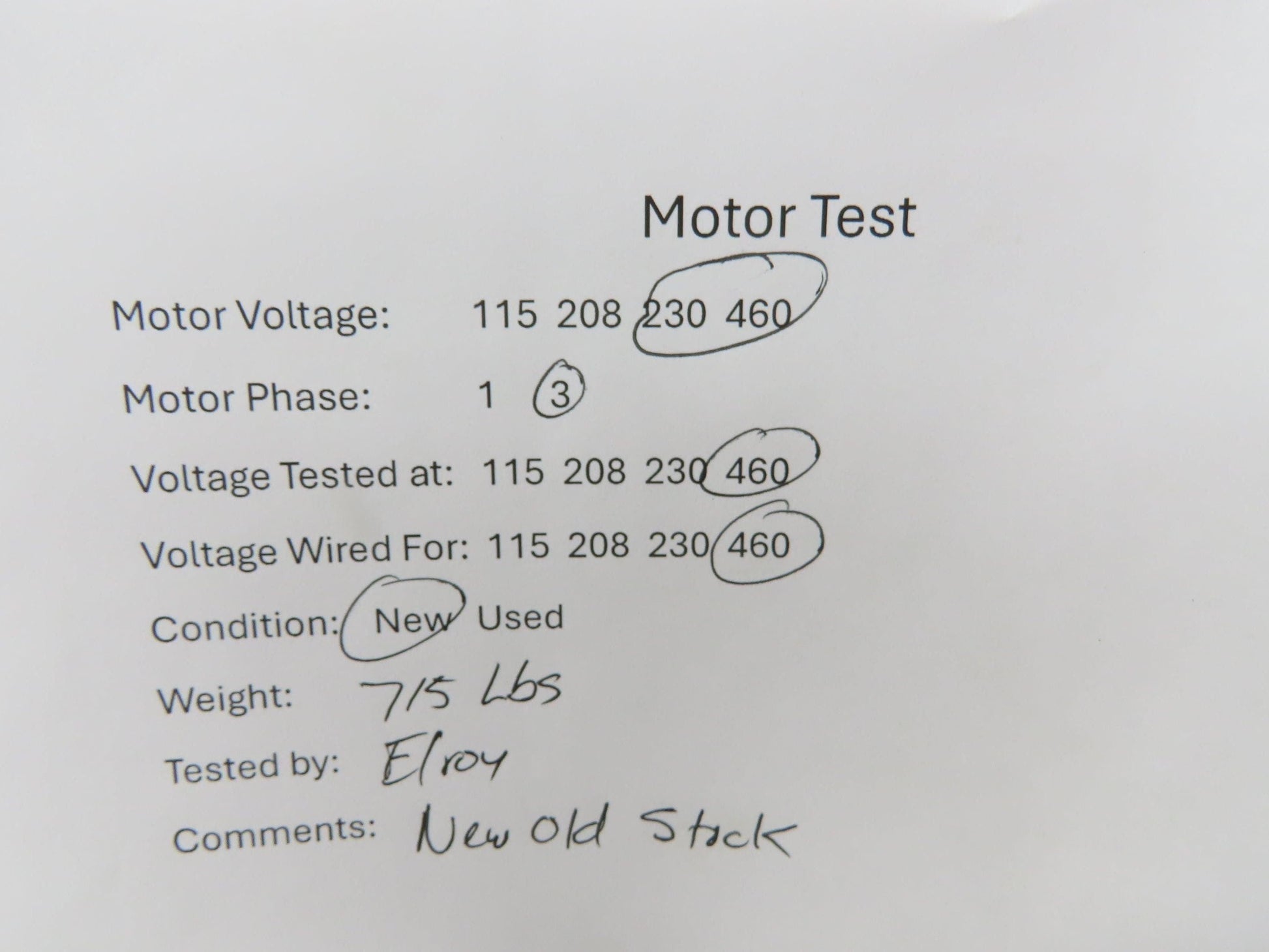 - New old stock. Believed to be unused, has some rust from storage but shows no signs of use. Tested @460V.