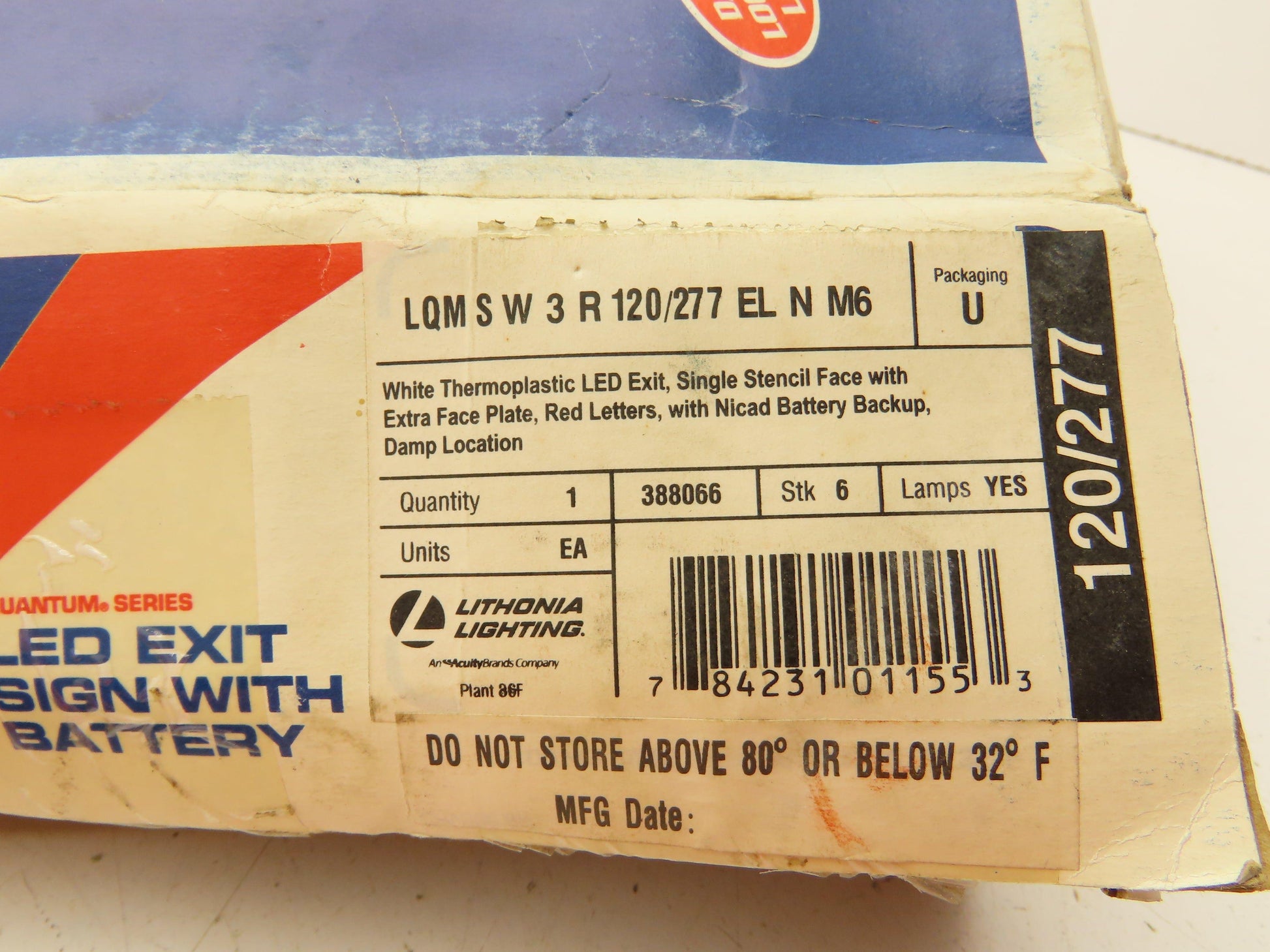 Lithonia Lighting LQMSW3R120/277ELNM6 LED Exit Sign With Battery 120/277V