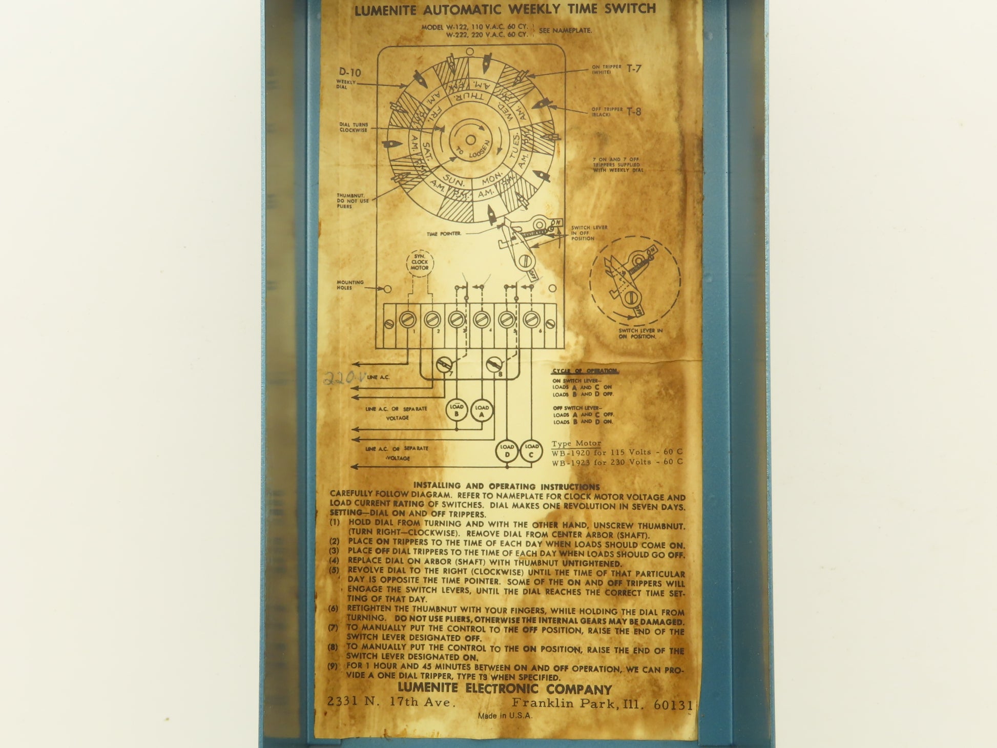 Lumenite Electronic W-222N Automatic Time Control 7 Day 220V 60Hz 15 Amp Vintage