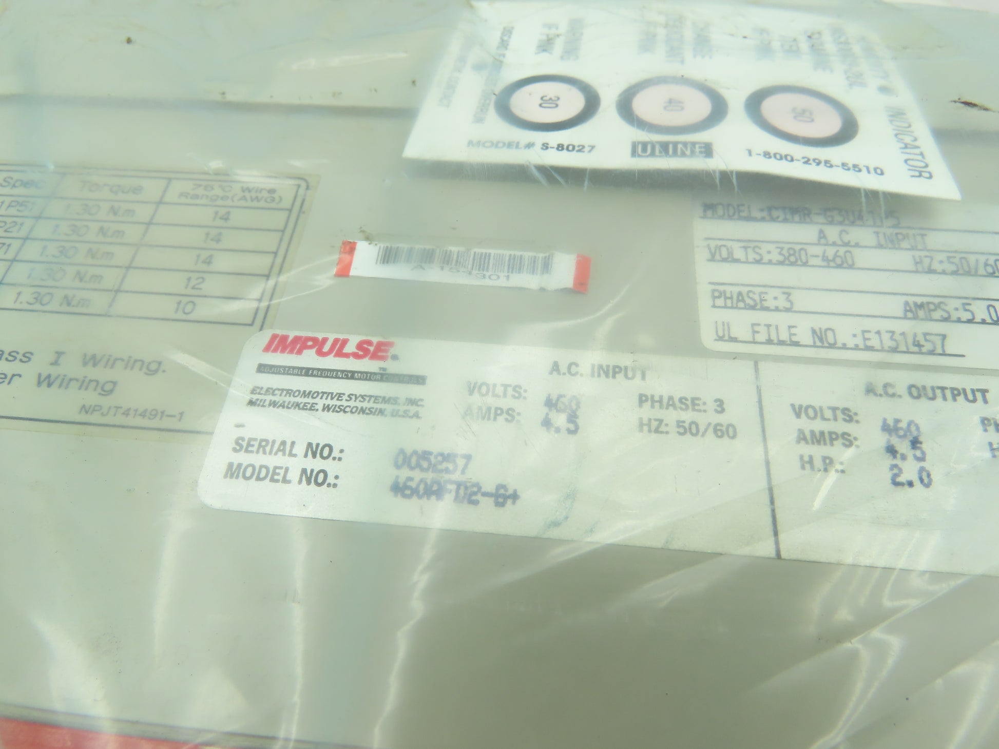 - Rated for 2hp 460v 4.5 amps.