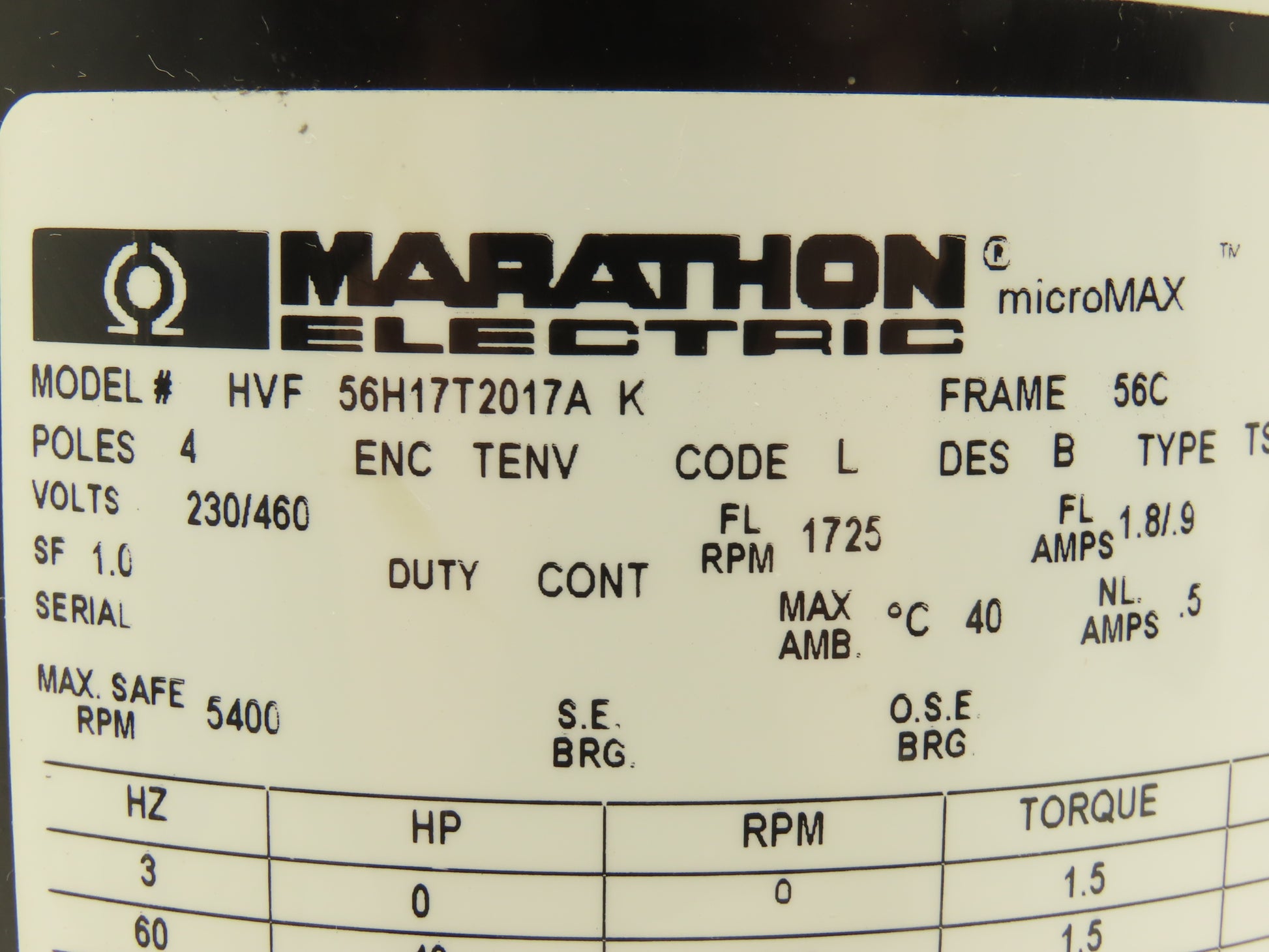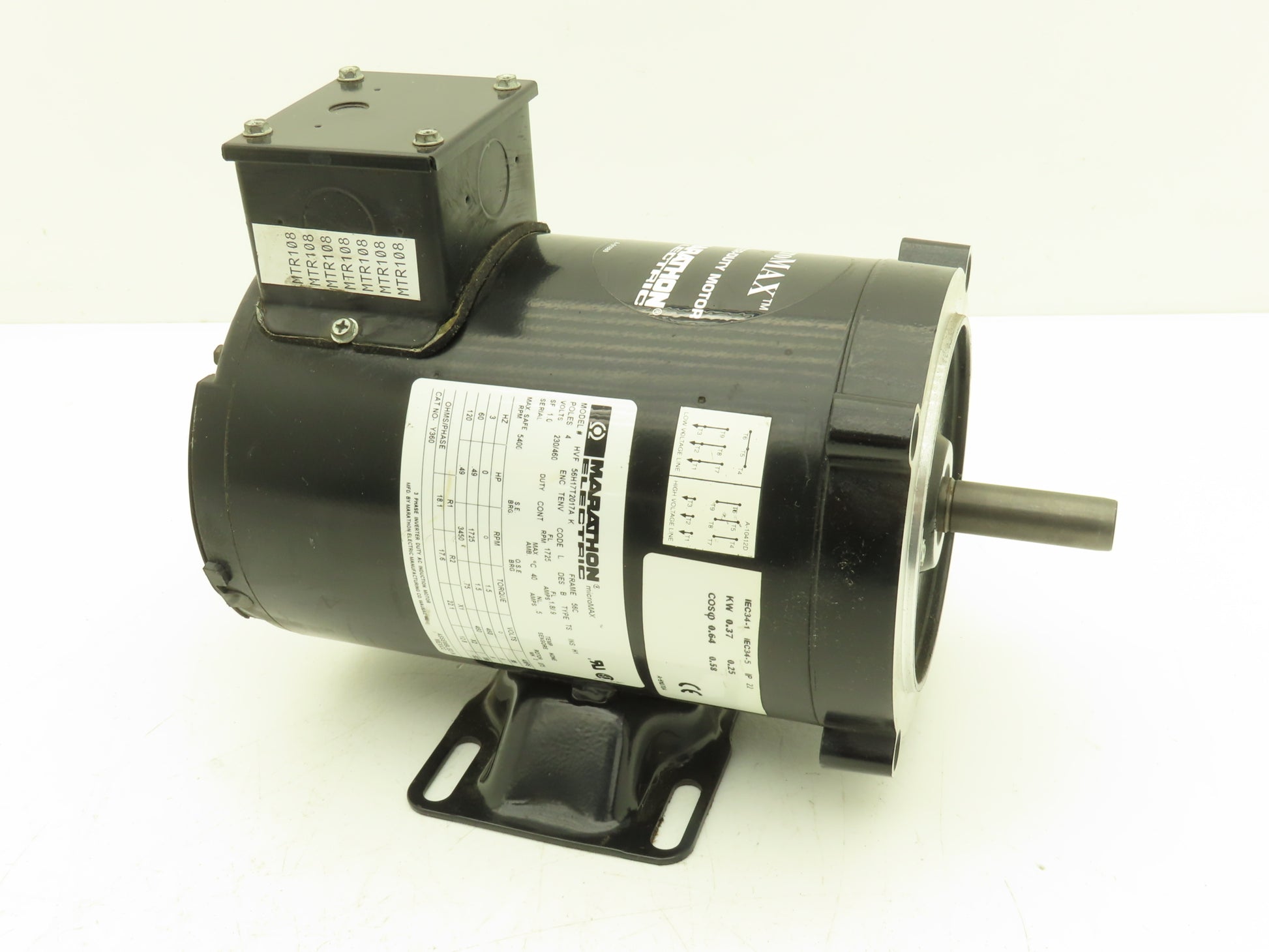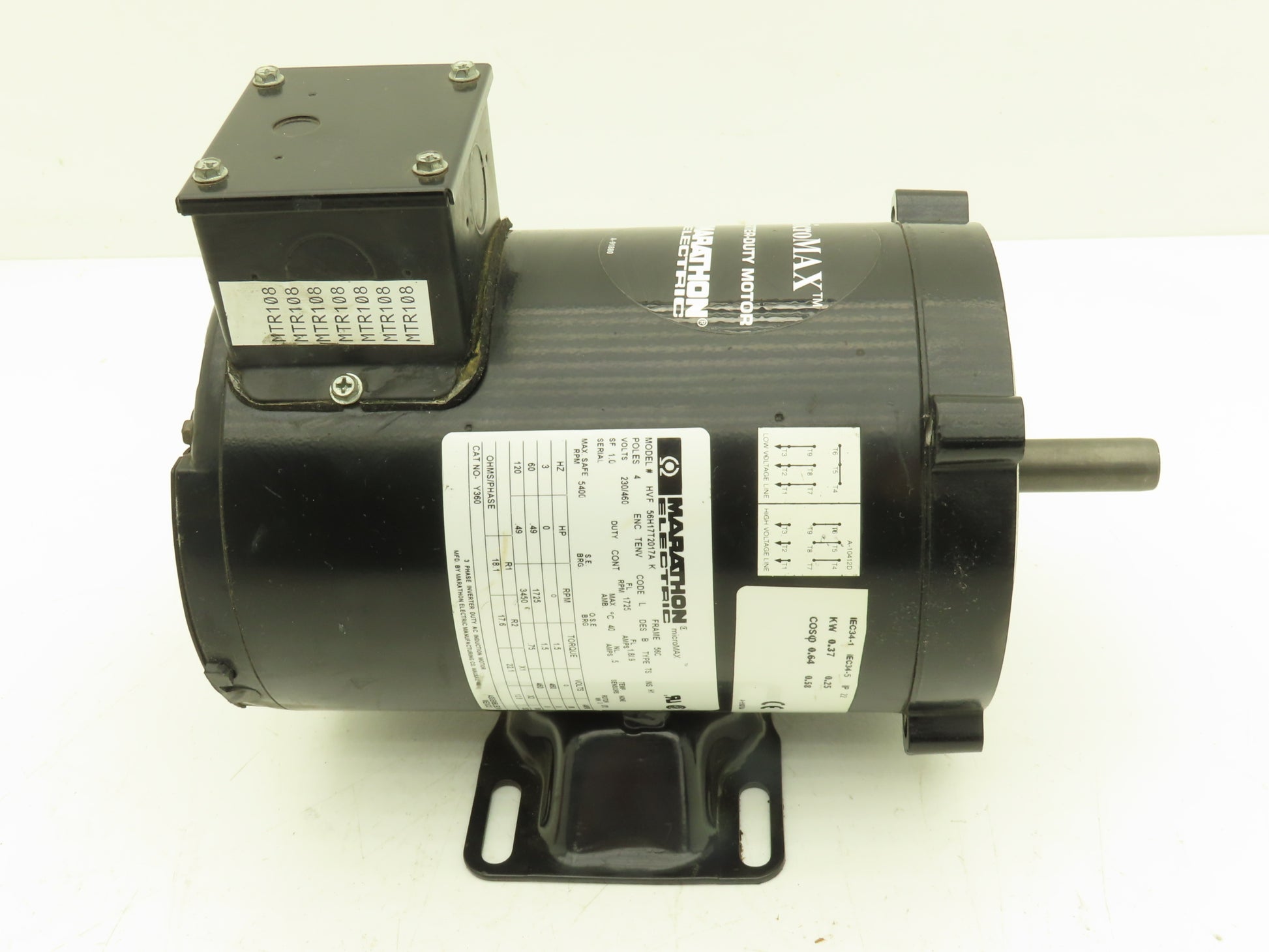 Marathon 56H17T2017A MicroMax Inverter Duty AC Motor 0.5Hp 1725rpm 230/460V 56C