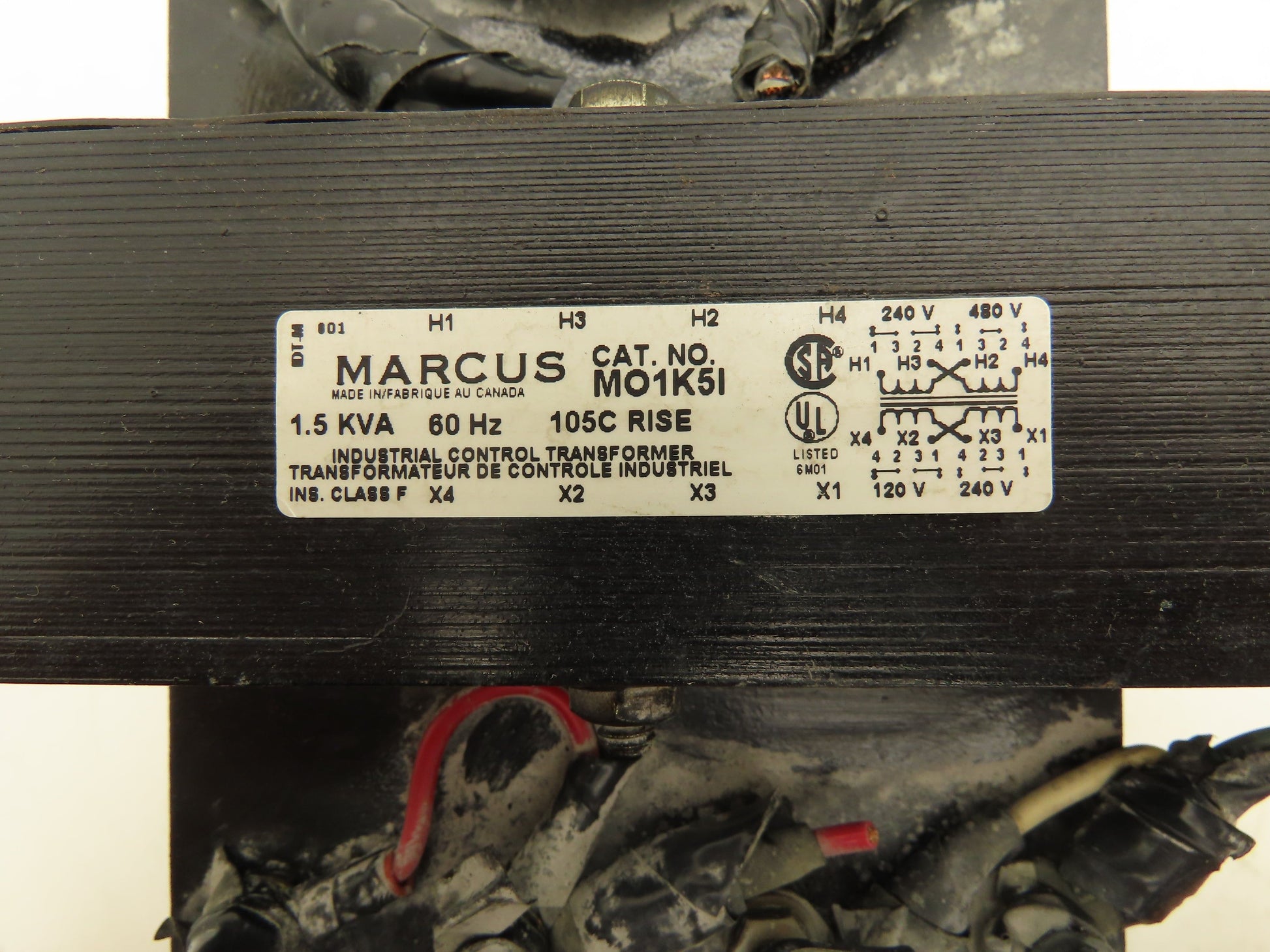 Marcus MO1K5I Transformer 480/240V Pri 240/120V Sec 1.5 kVA Ins. Cl. F