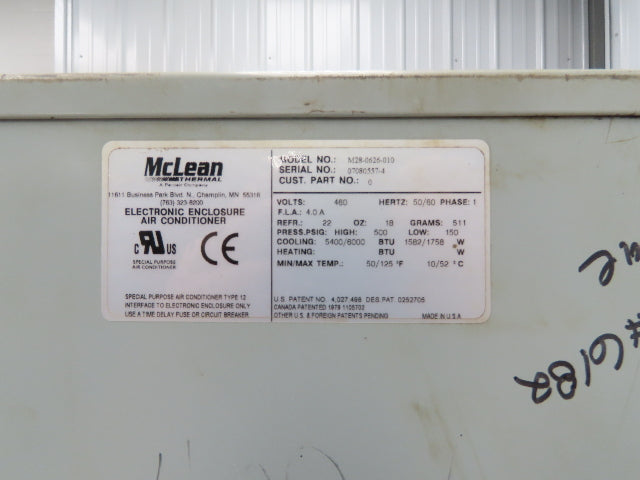 McLean M28-0626-010 Electrical Enclosure Air Conditioner 6000 BTU 460V 1Ph