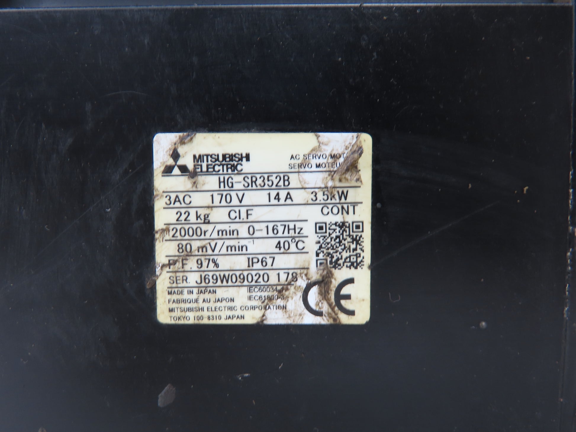 Mitsubishi HG-SR352B Servo Brake Motor 3.5kW 2000 RPM 170V 3PH Encoder 0BA-RM