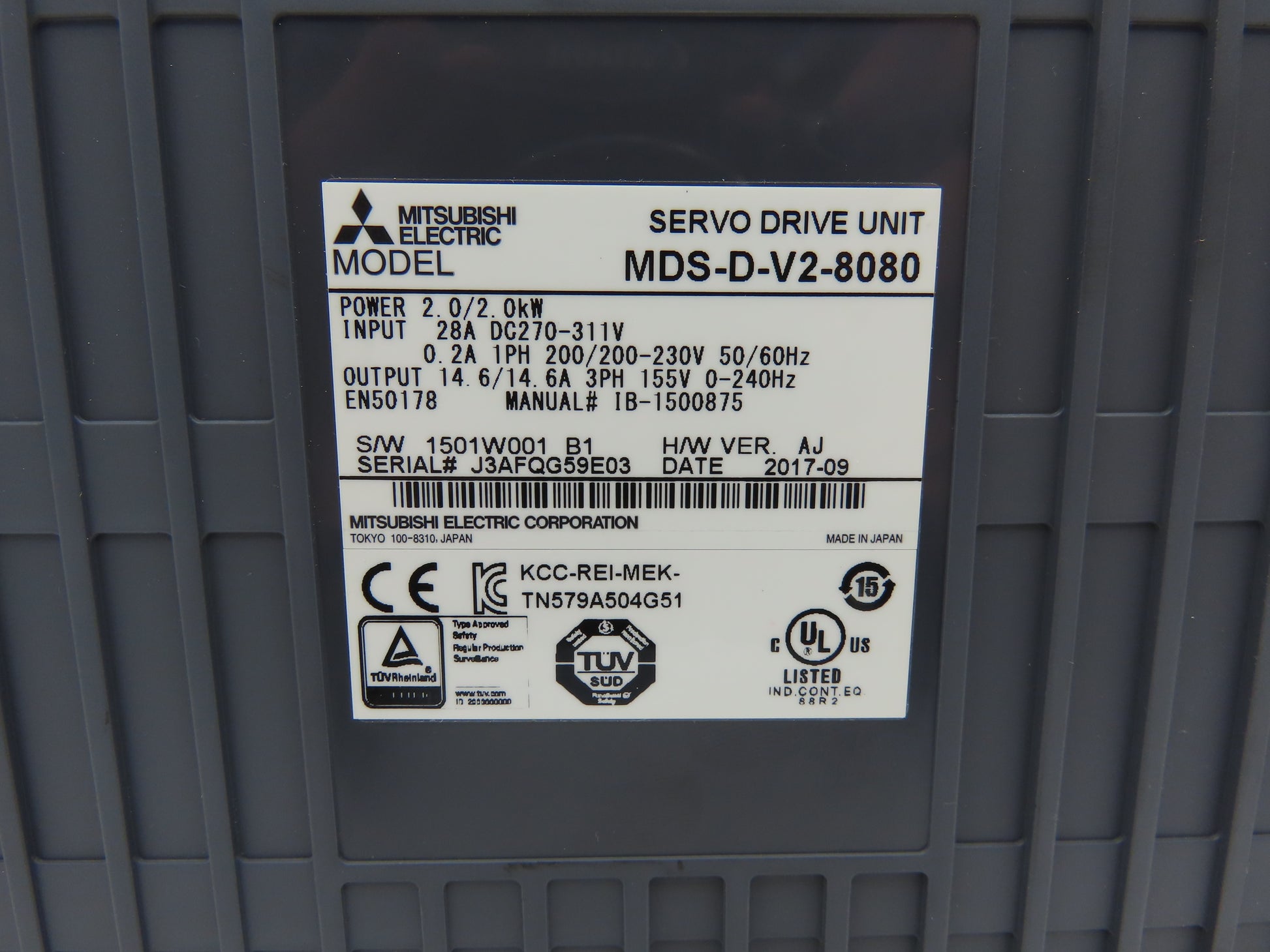 Mitsubishi MDS-D-V2-8080 Servo Amplifier Drive 230VAC In 155VAC 3PH 0-240Hz Out