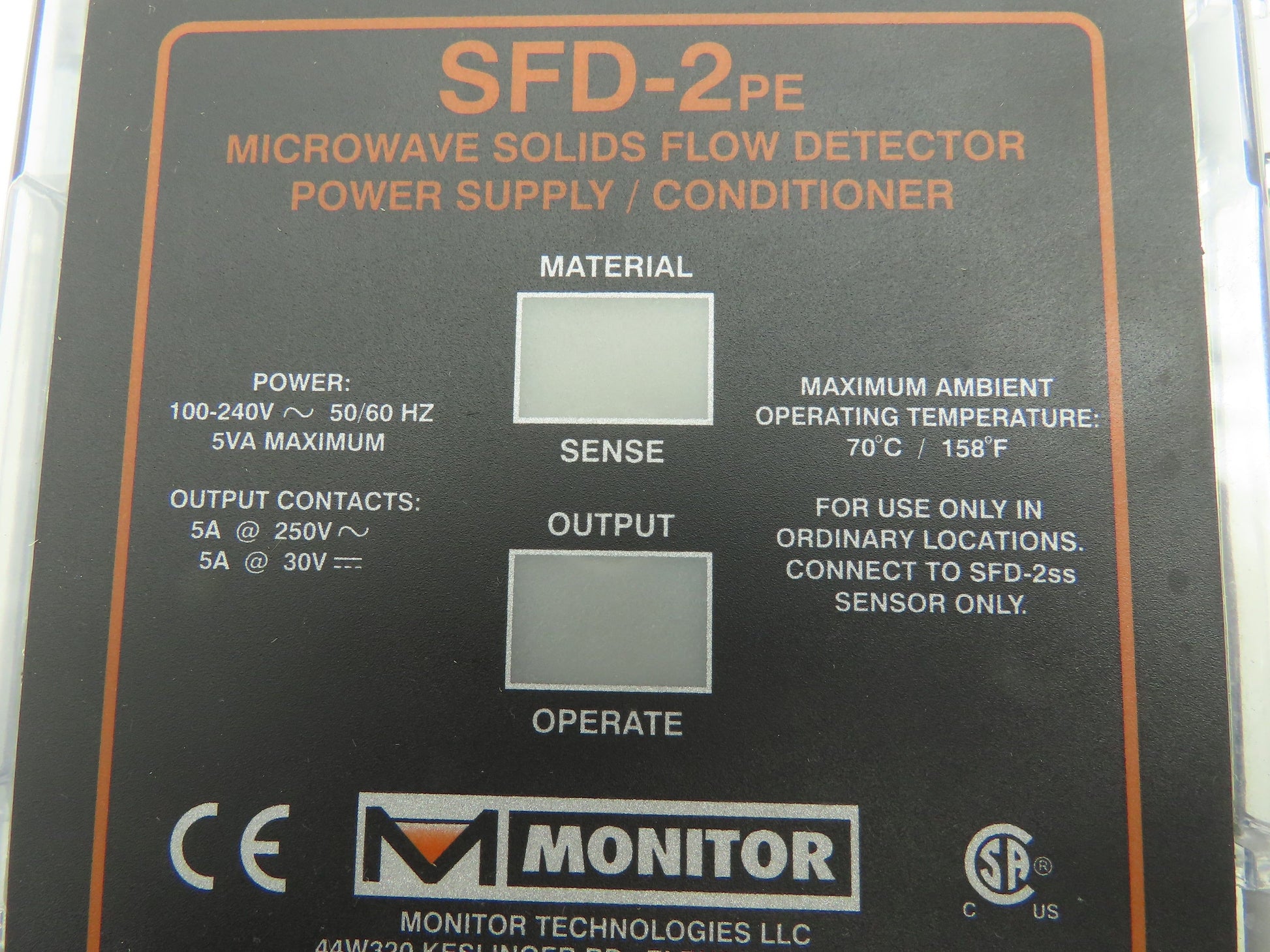 Monitor SFD-2PE Microwave Solids Flow Detector Power Supply Conditioner