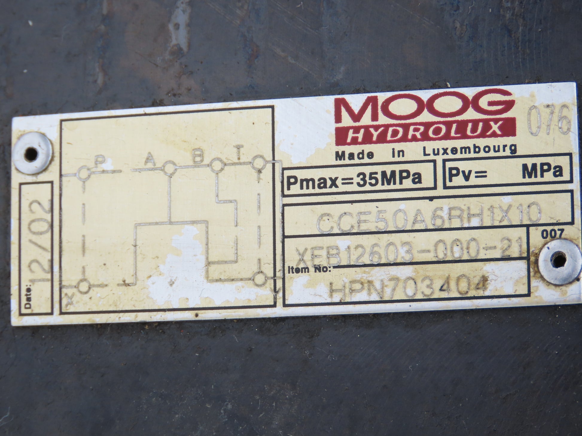 Moog CCE50A6RH1X10 Hydraulic Cartridge Valve