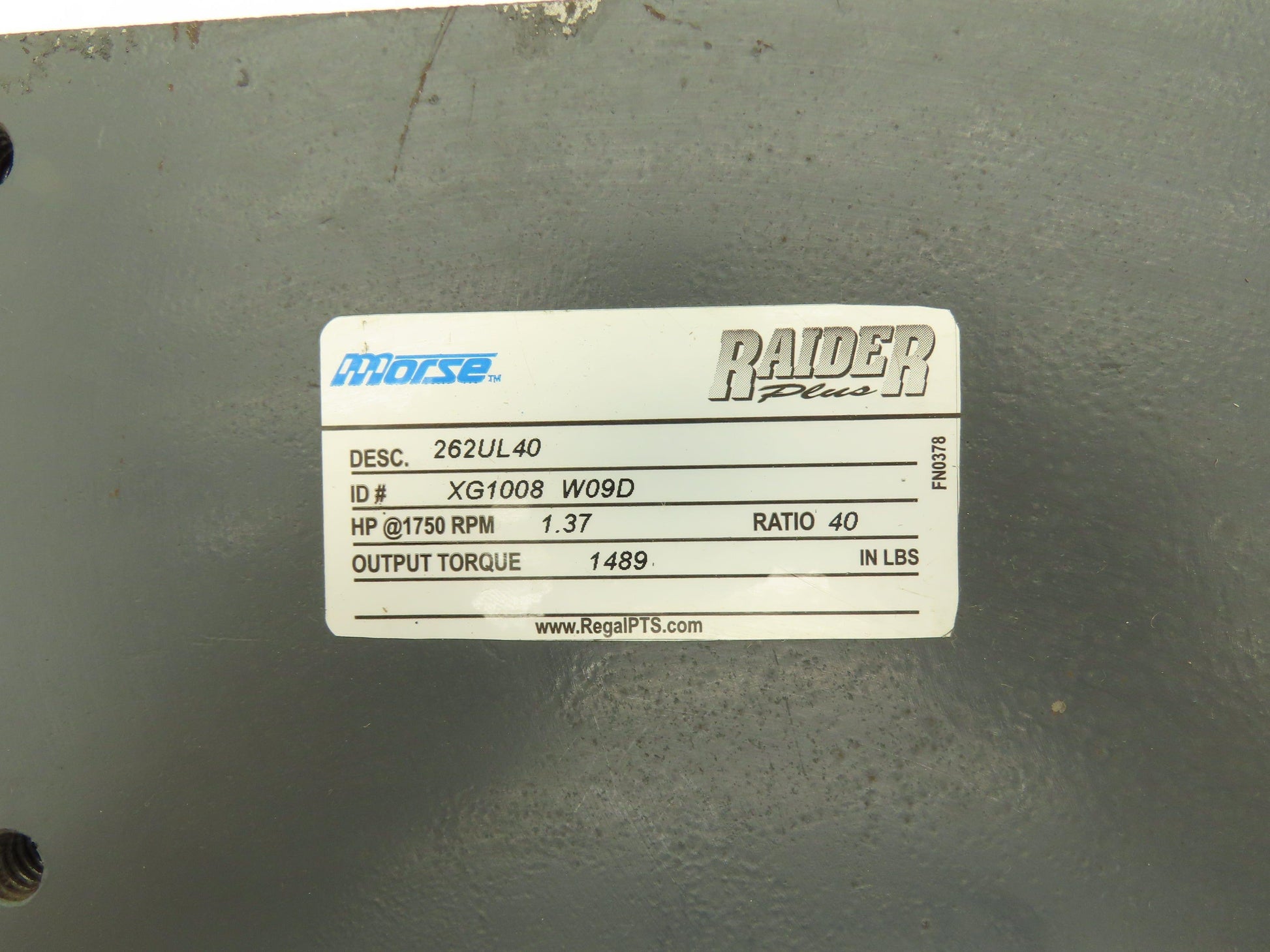 Morse Raider 262UL40 Worm Gearbox 40:1 Reducer 1.4hp 44rpm LH Output