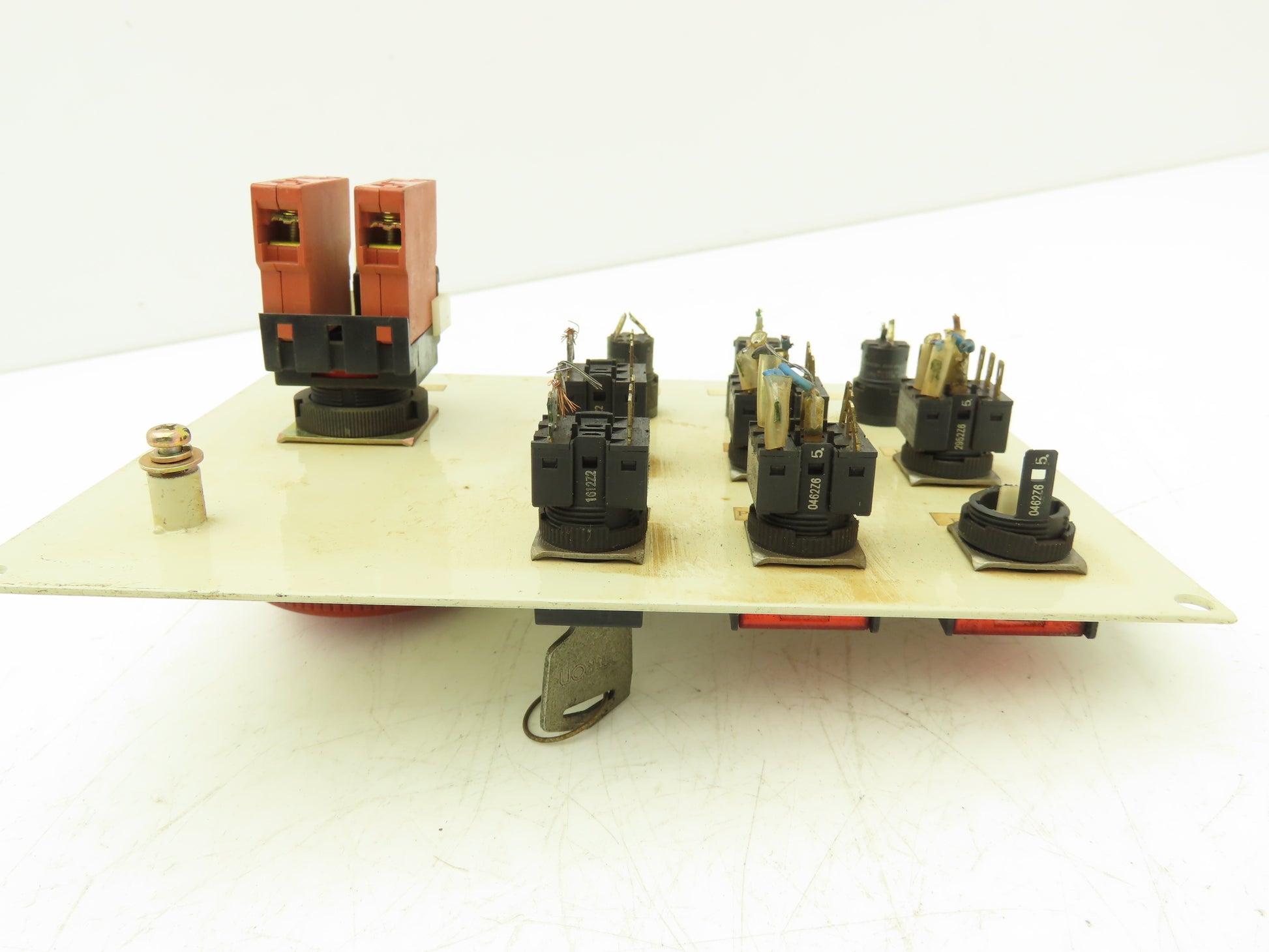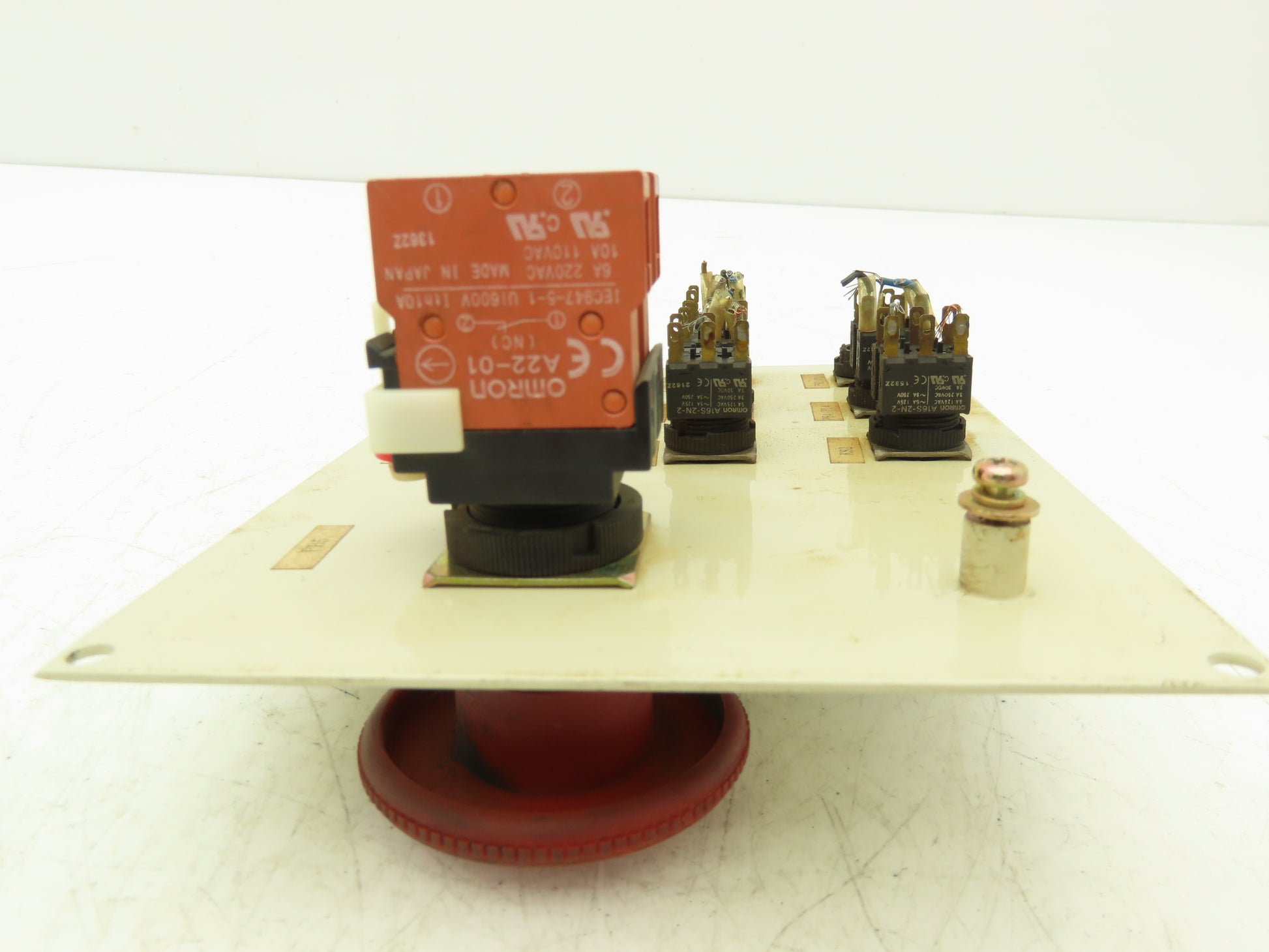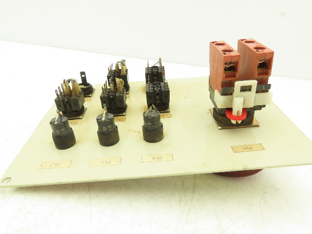 - Functions include: Indicator lights: Power, System error, CPU error. Pushbuttons: Motors on, start, motors off, stop. Auto/manual keyed switch. Teach/playback selector switch. Emergency e-stop.