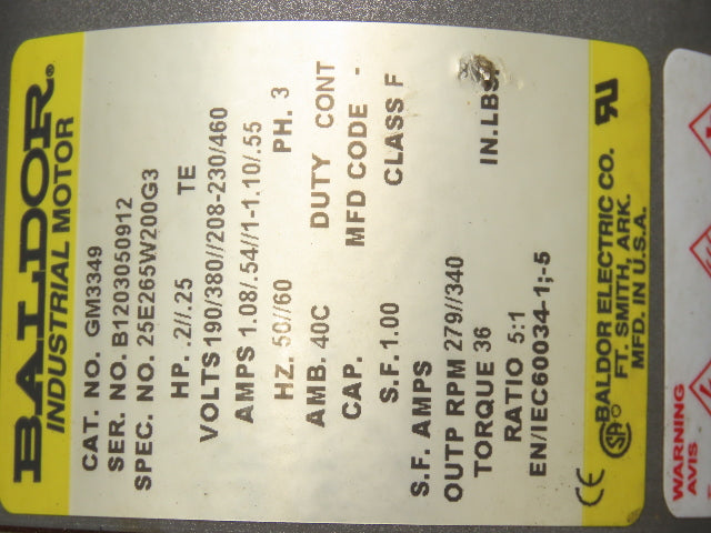 - Motor & Gearbox: 1/4Hp 208-230/460V 3PH 5:1 Gearbox
