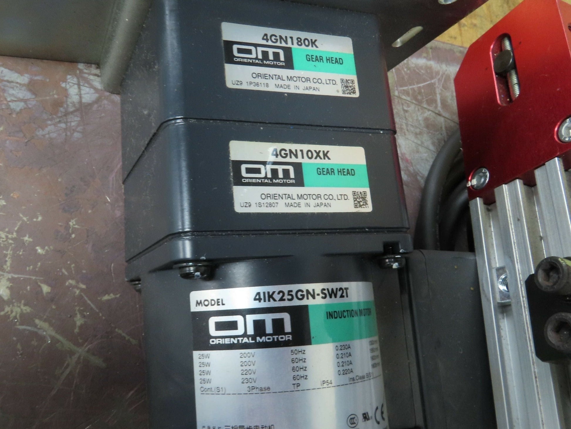 - 220V 3PH Oriental gearmotor chain drive double reduction. 10:1 and 180:1 reducers.