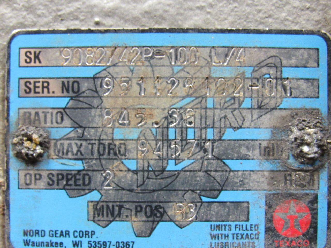 Nord SK9082/42P-100L/4 High Torque Gear Box Speed Reducer 845.38:1 Ratio