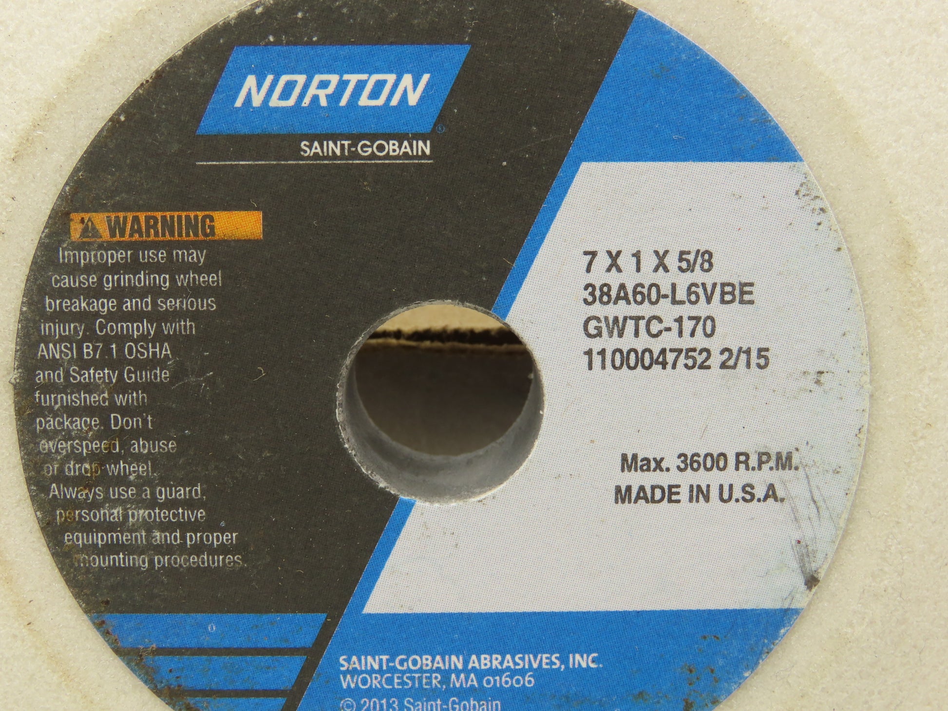 Norton 38A60-L6VBE 7 X 1 X 5/8 Dished Grinding Wheel 5/8" Bore x 1/4" W Lot of 5
