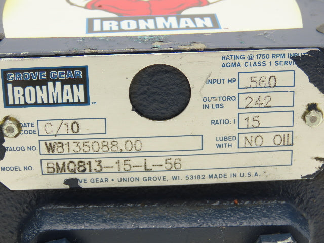 Ohio Gear BMQ813-15-L-56 Gearbox 15:1 Reducer 1/2Hp 116rpm 56C LH Output