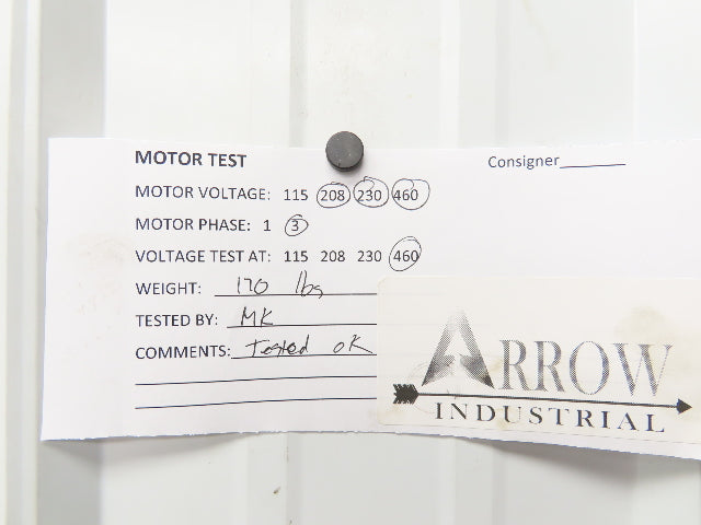 - Motor Specs: 2Hp 1725 RPM 230/460V 3PH 56C