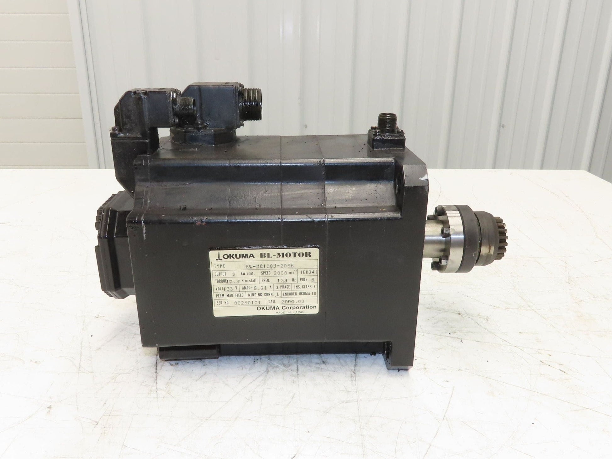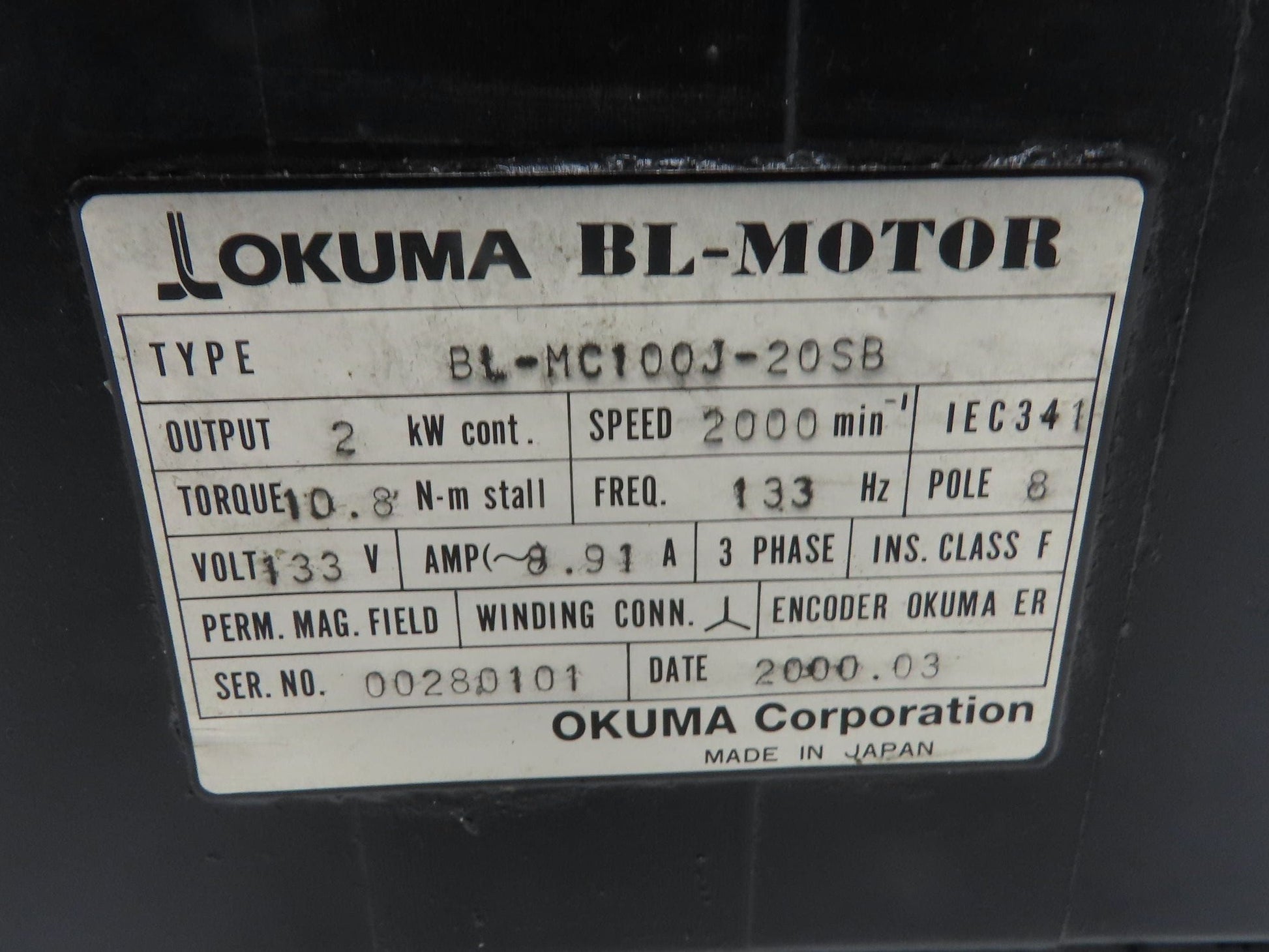 Okuma BL-MC100J-20SB AC Servo Motor 2kW 2000 RPM 133V 8.91A 3PH Encoder