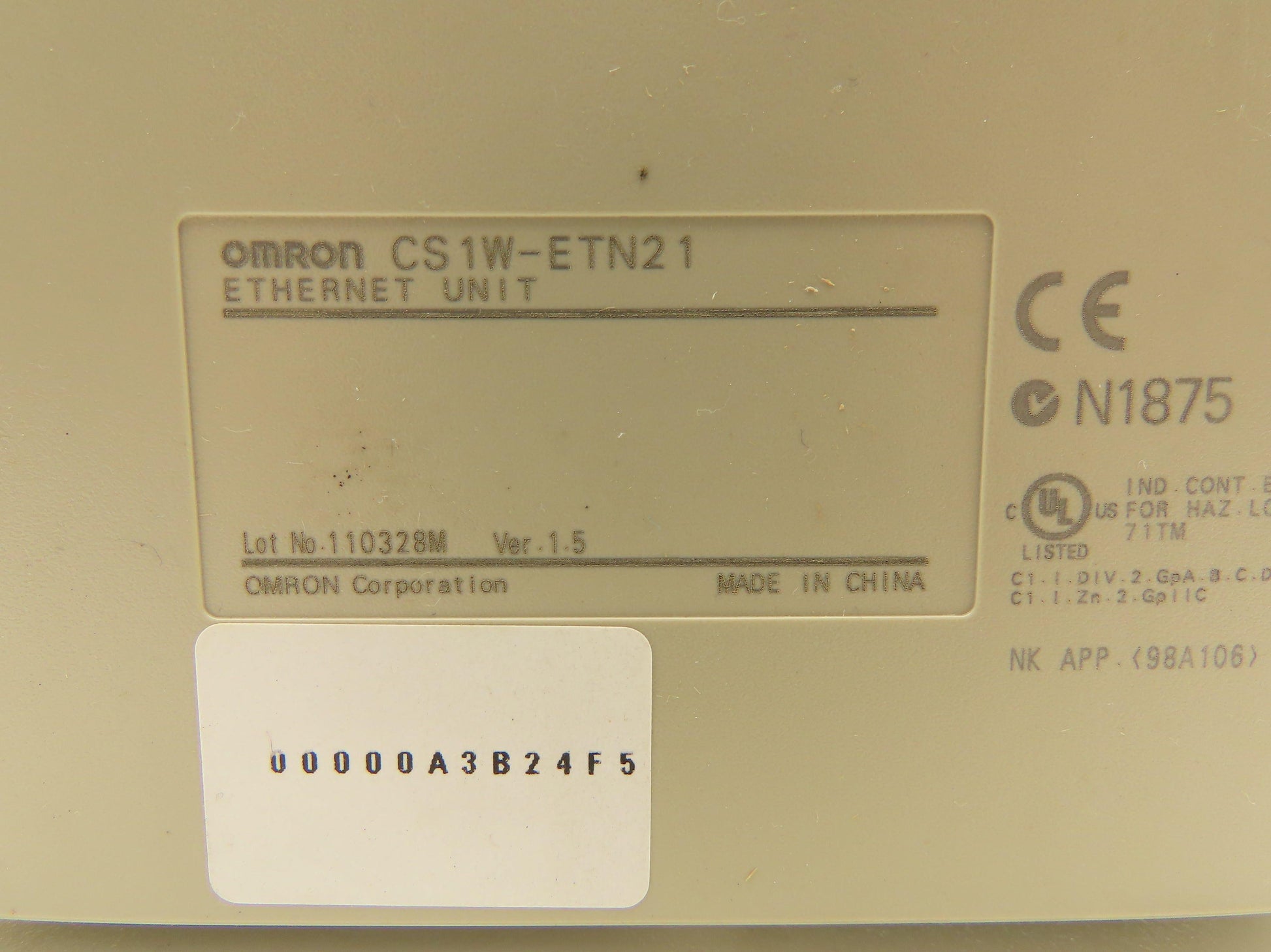 Omron CS1W-ETN21 Ver 1.5 Sysmac 100Base-TX Ethernet Unit