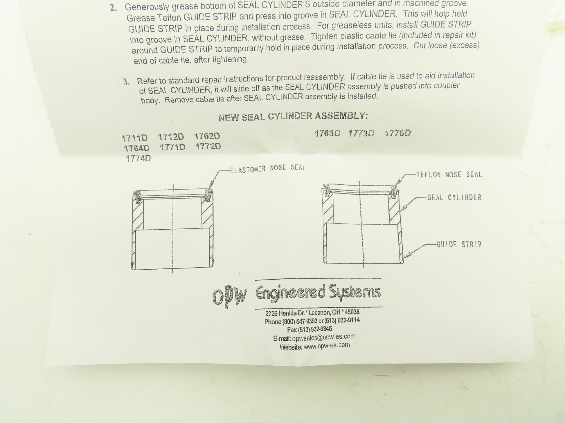 OPW Seal Cylinder Assembly 1-1/2" - 3" Kamvalok Coupler Kit
