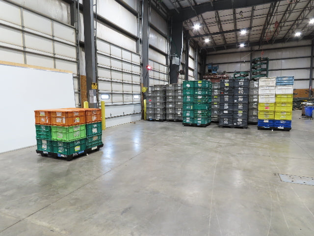 ORBIS Stakpak Stackable Plastic Tote Container Bin 24x22x14" Green Orange Lot 12