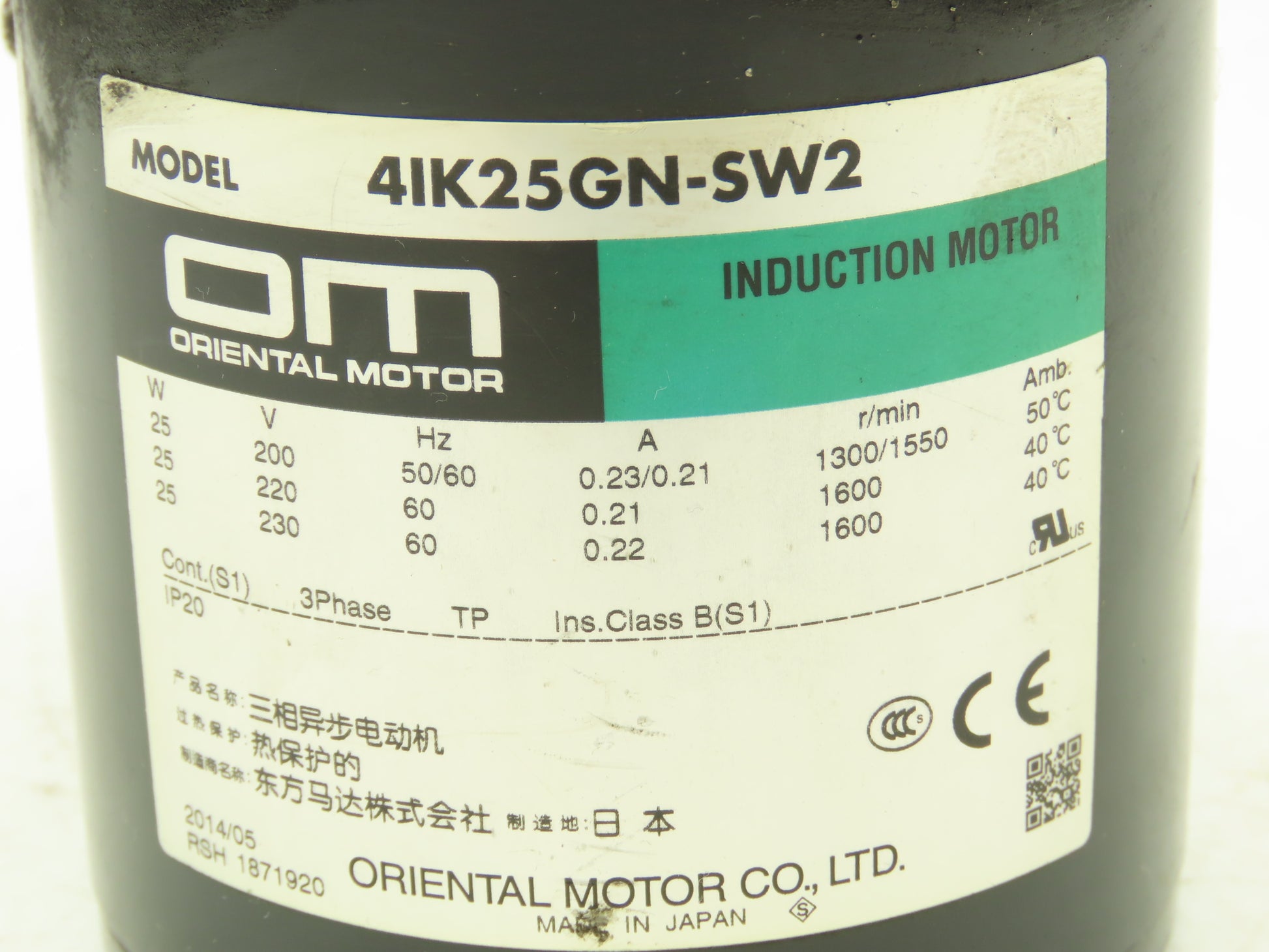 Oriental Motor 4IK25GN-SW2 Induction Motor 25W 1600 RPM 200-230VAC 3PH
