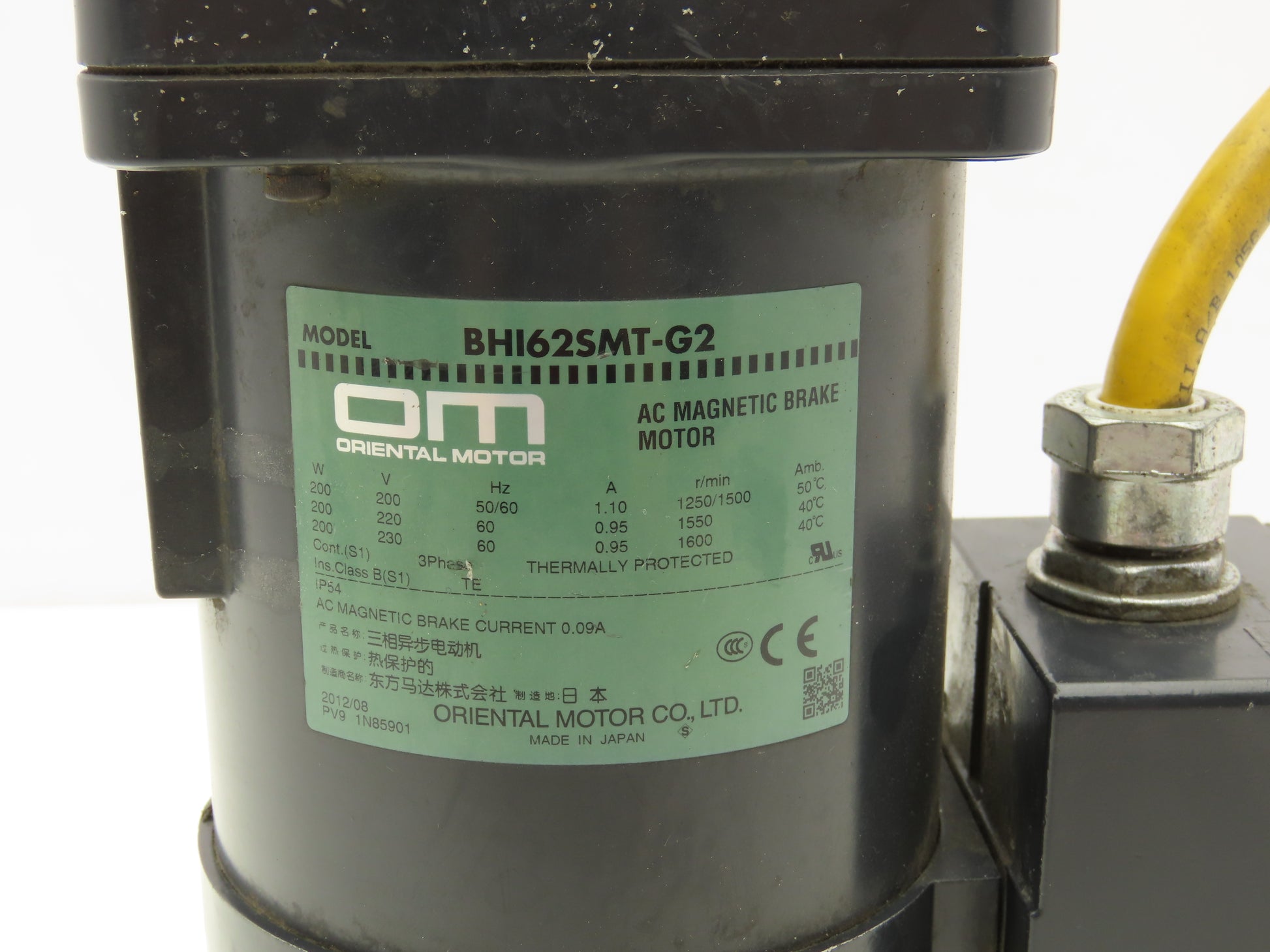 - Motor Brand and Model: Oriental Motor BHI62SMT-G2
