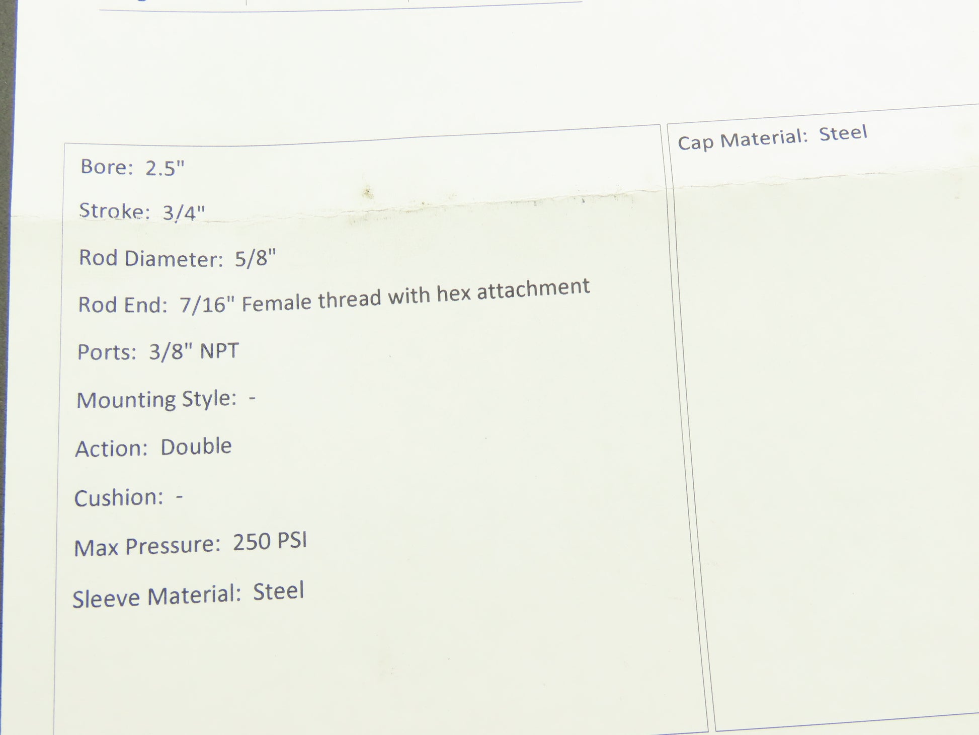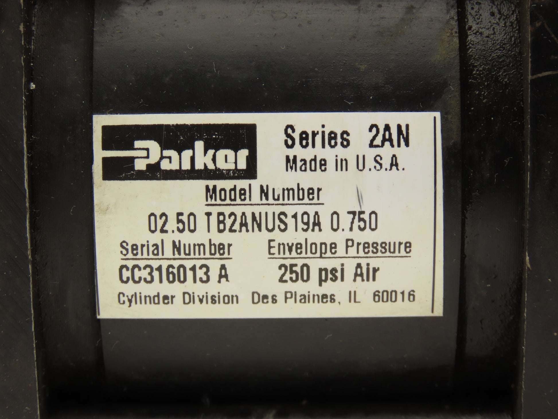 Parker 02.50 TB2ANUS19A Pneumatic Air Cylinder 2-1/2" Bore 3/4" Stroke 250psi