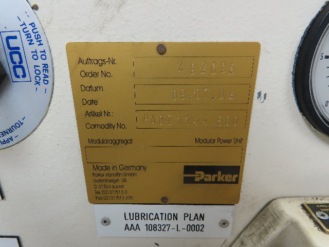 Parker 45 Gal. Hydraulic Power Unit,2 Hp Motor, 3 Pump Stack 460v 3ph