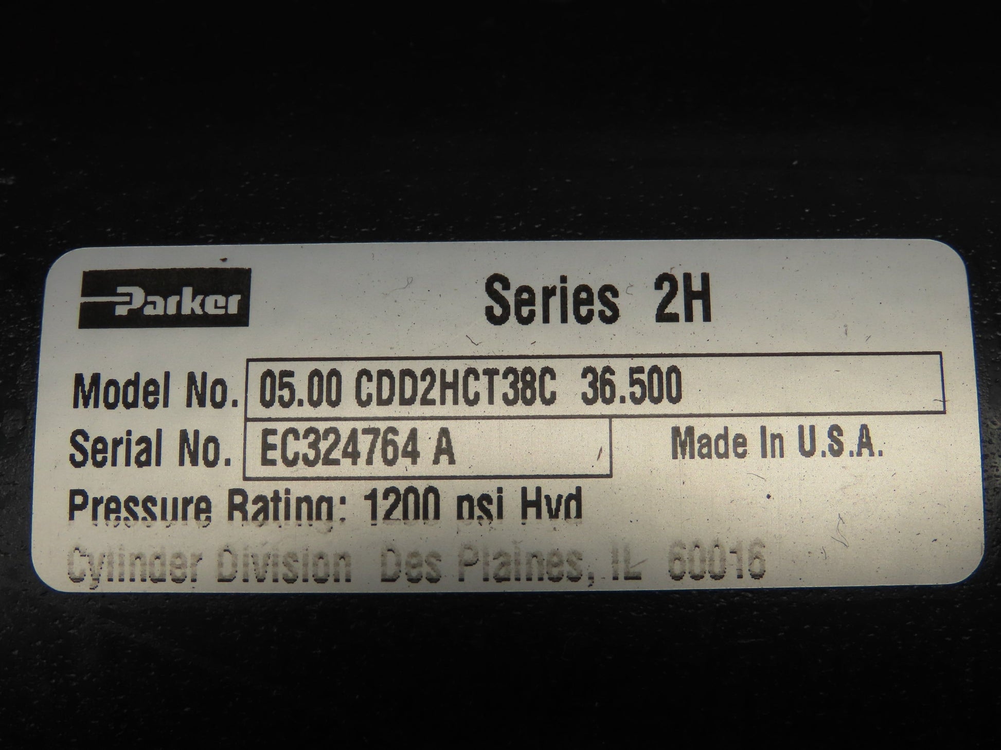 Parker Series 2H Hydraulic Cylinder 5" Bore 36.5" Stroke Trunnion Mount 1200 PSI