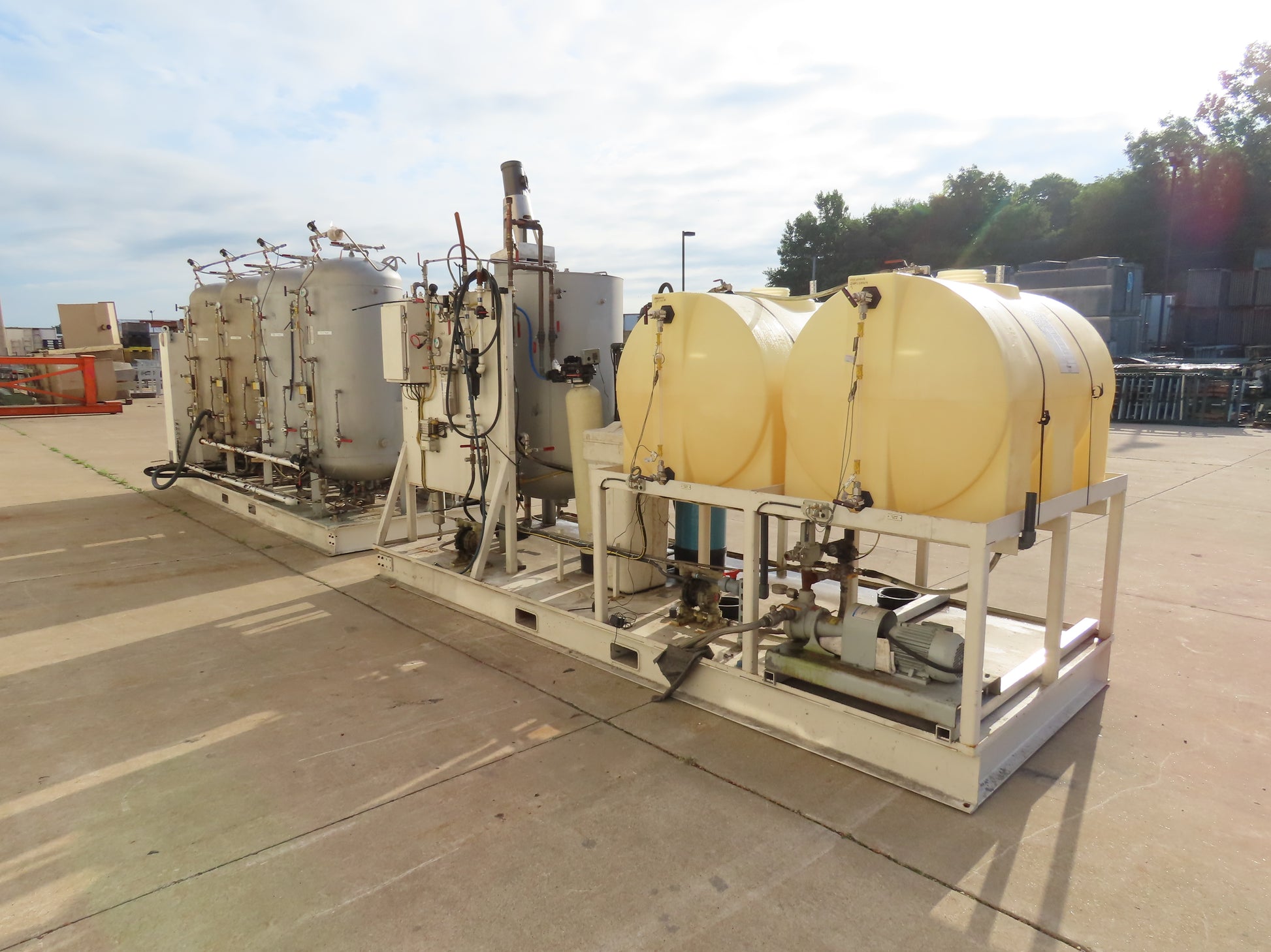 - The filtration side is set up with a 200 Gal stainless mixer tank and two 200 Gal fill tanks.