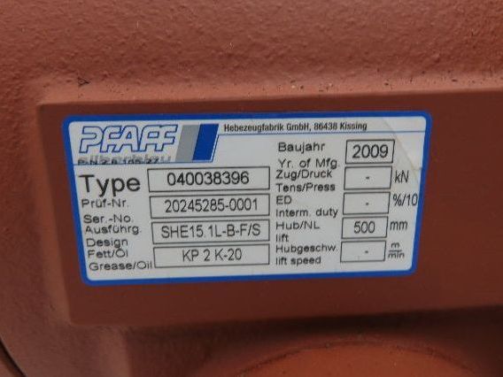 Pfaff SHE15.1L-B-F/S Worm Gear Screw Jack 500mm Stroke 15.1 kN 24:1 Ratio