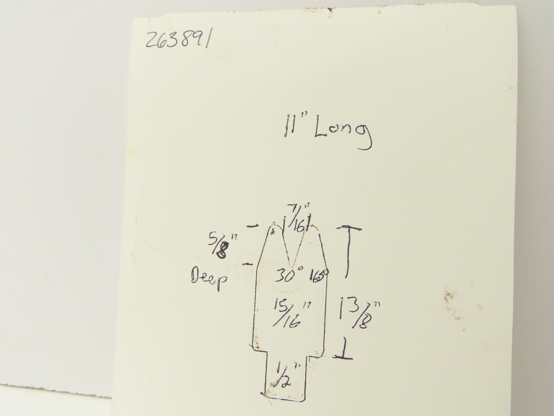- The V is 30°. 7/16" wide 5/8" deep.